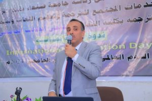 Echoing these sentiments, Dr. Ibraheem Tagaddeen, Director of the Community Center for Translation & Language Teaching (CCTLT) at Sana’a University, commended all those involved in organizing the symposium for the International Translation Day 2024. He highlighted the rapid advancements in science and technology in today’s world of globalization and digitalization, which necessitate the translation of various fields of knowledge, and require translators to keep pace with recent developments in translation technology. Assoc. Prof. Tagaddeen further explained that translation is a crucial tool for cultural and civilizational communication between nations, playing a significant role in knowledge transfer and providing opportunities for societies to engage with contemporary civilizations. He asserted that no society could flourish without a proactive translation movement that facilitates knowledge exchange for future generations.