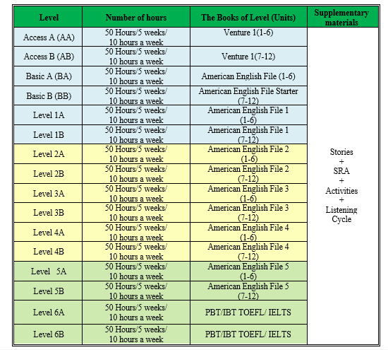 • كادر مؤهل ذو كفاءة عالية وخبرات كبيرة في مجال تعليم اللغة الإنجليزية يتم اختبارهم ضمن آلية منظمة ووفق معايير الجودة