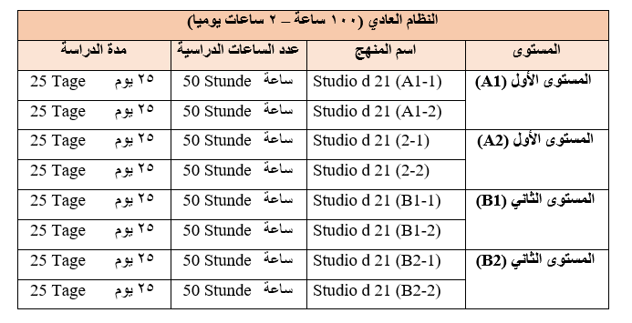 وتقدم وحدة تعليم اللغة الألمانية دورات برنامج الكفاءة باللغة الألمانية على النحو الآتي: