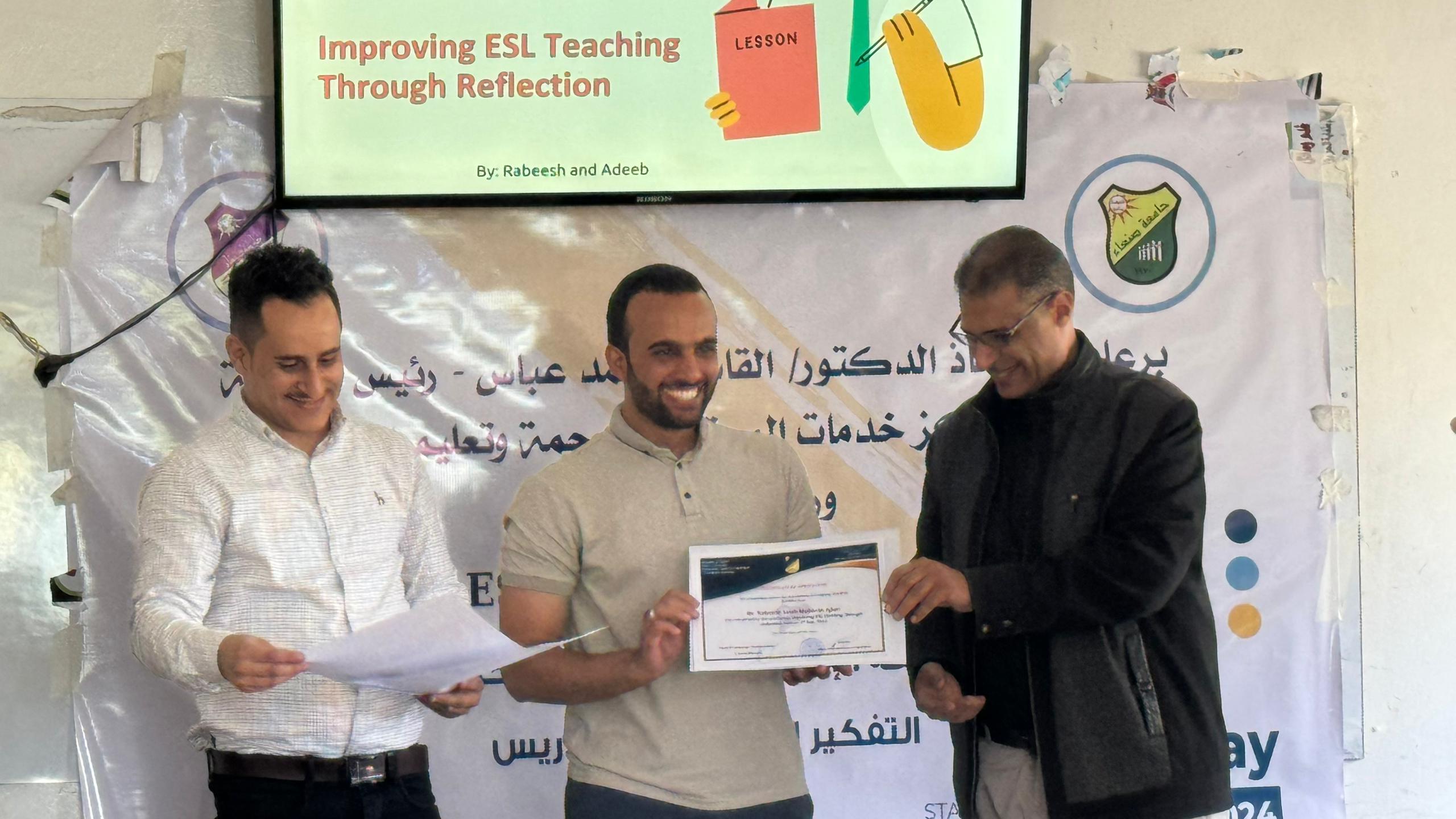 تحت رعاية رئيس الجامعة، الأستاذ الدكتور القاسم محمد عباس، نظم مركز خدمات المجتمع للترجمة وتعليم اللغات ورشة عمل تحت عنوان “تحسين تدريس اللغة الإنجليزية من خلال استخدام استراتيجيات التفكير التأملي في التدريس”.