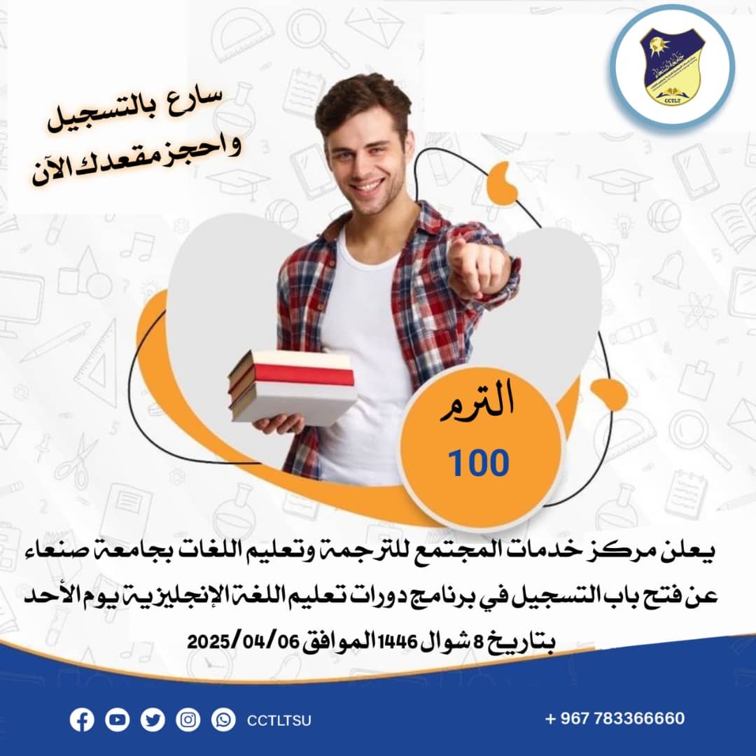 😍 ويعلن عن فتح باب التسجيل في دورات تعليم اللغة الإنجليزية للترم *-100-* يوم الأحد بتاريخ 8 شوال 1446 الموافق *-2025/04/06م-*