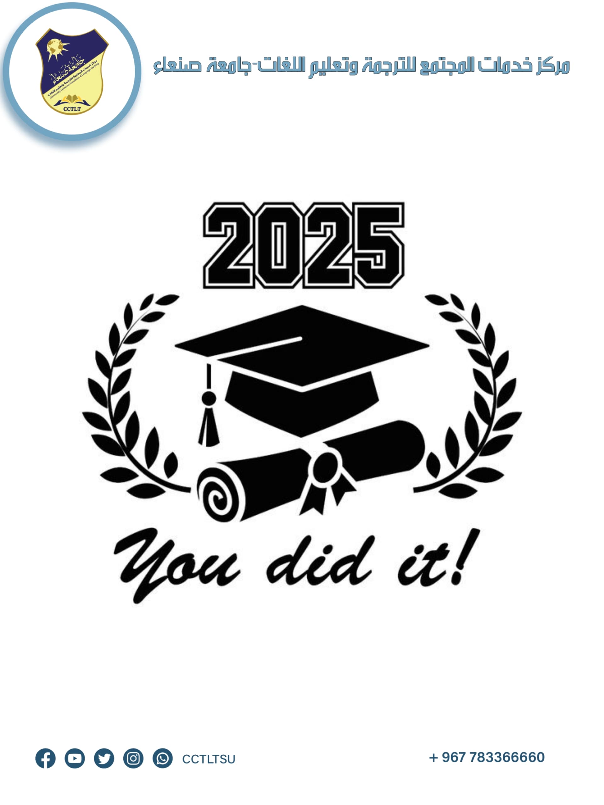 يتقدم مركز خدمات المجتمع للترجمة وتعليم اللغات – جامعة صنعاء بتهنئة الطلبة خريجي الثانوية العامة كما تتقدم بالتهنئة الخاصة لأوائل الجمهورية للعام 2025م الملتحقين في المركز في مختلف اللغات
