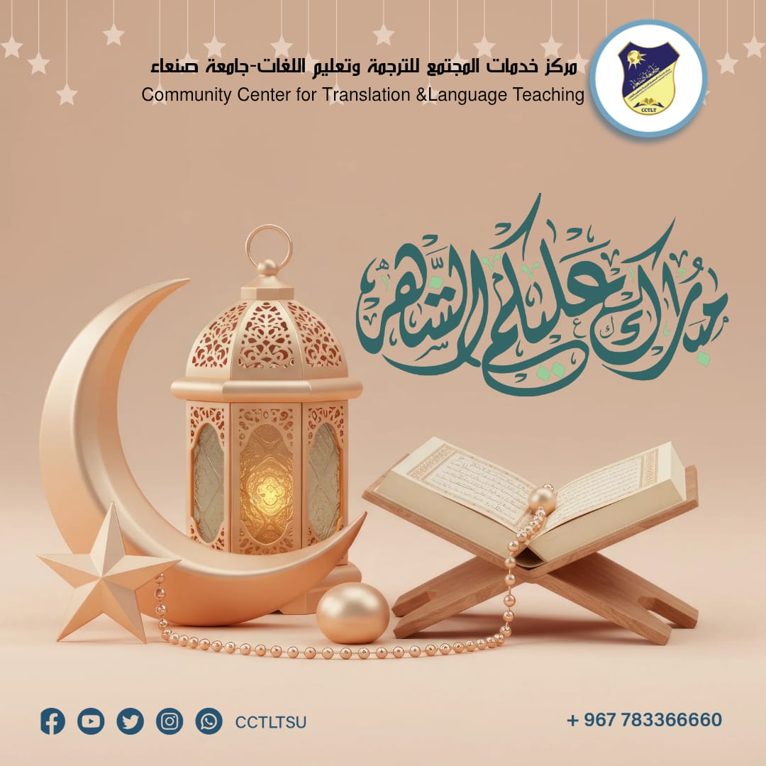 بمناسبةحلول شهر رمضان المبارك يتقدم مركز خدمات المجتمع للترجمةوتعليم اللغات بالتهنئة لشعبنا اليمني العظيم و لأمتنا العربية والأسلامية، ويتمنى لكم صوماً مقبولاً، وإفطاراً شهيا.