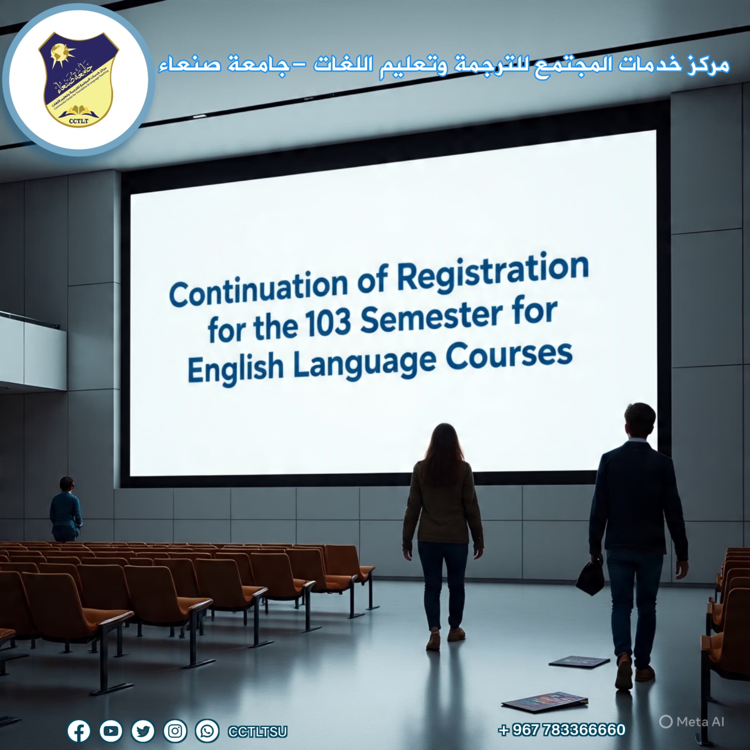 ستبدأ جميع المستويات خلال الفترتين الصباحية والمسائية فعلى الراغبين في التسجيل الحضور للمركز لإستكمال إجراءات التسجيل. للمزيد من المعلومات والتسجيل، يرجى زيارة موقعنا الإلكتروني أو التواصل معنا عبر: ☎️ 464320 / 464322 📞 783366660 ✉️ cctltsu_info@su.edu.ye ✉️ ctltsu@gmail.com تابعونا على …