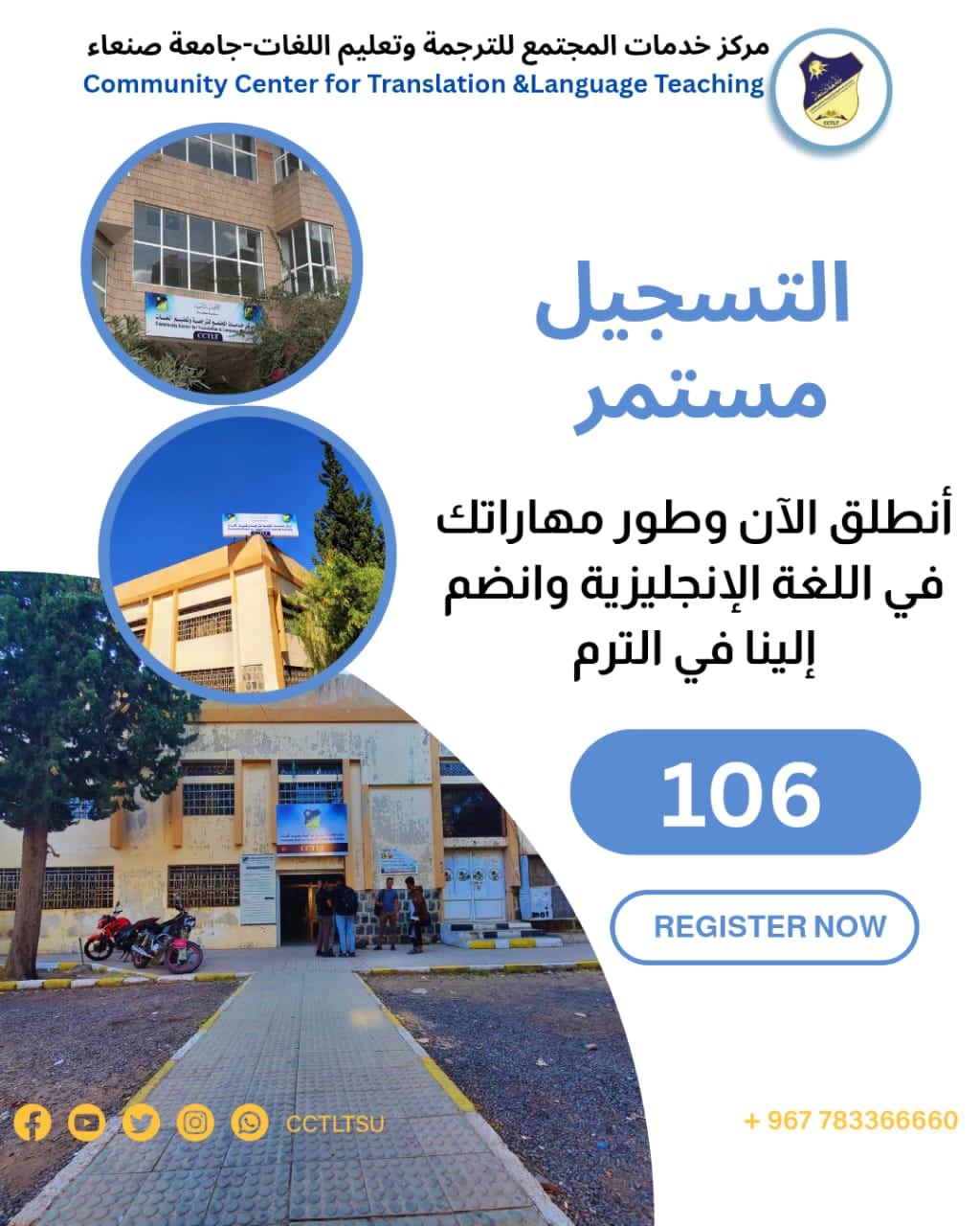 هل ترغب في تحسين مهاراتك في اللغة الإنجليزية؟ هل تبحث عن بيئة تعليمية متميزة؟ هل تريد أن تكون جزءًا من مجتمع جامعي حيوي ومتنوع؟ انضم إلينا في مركز خدمات المجتمع للترجمة وتعليم اللغات بجامعة صنعاء، واكتشف الفرص التي نقدمها لك …