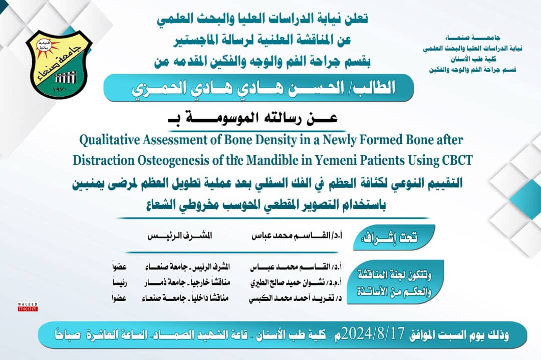 (التقييم النوعيي لكثافة العظام في الفك السفلي بعد عملية تطويل العظام لمرضي يمنيين باستخدام التصوير المقطعي المحوسب مخروطي الشعاع)