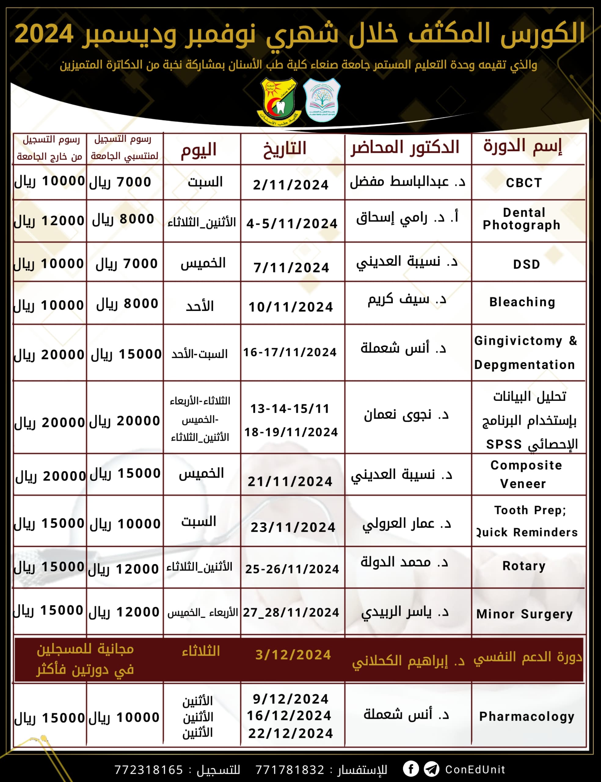 ✨ من جديد تعلن وحدة التعليم المستمر عن الكورس المكثف الثاني والذي يضم نخبة من كوادر طب الأسنان✨