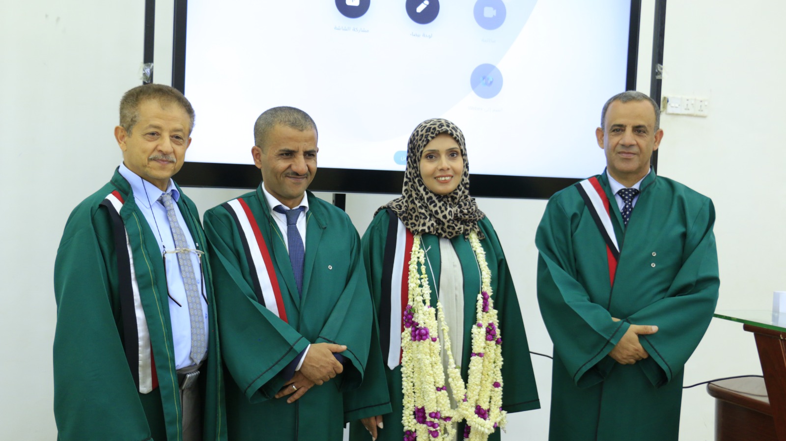 وتشكلت لجنة المناقشة والحكم من الأستاذ الدكتور (عبد القادر محمد قاسم زبارة) مشرفًا وعضوًا للجنة، والأستاذ الدكتور (فؤاد لطف أحمد المترب) مناقشًا داخليًا ورئيسًا للجنة، والأستاذ الدكتور (عبد الحق حسين سعد الدين الحسني) مناقشًا خارجيًا وعضو اللجنة.