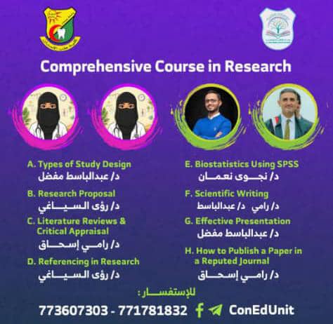 أعلنت وحدة التعليم المستمر بكلية طب الأسنان عن عزمها إقامة كورس تدريبي متخصص في مجال الأبحاث العلمية، يُقدَّم بإشراف نخبة من الدكاترة والأكاديميين المختصين، ويهدف إلى تنمية المهارات البحثية ورفع كفاءة المشاركين وفق الأسس العلمية المعتمدة. وأوضحت الكلية أن الكورس …