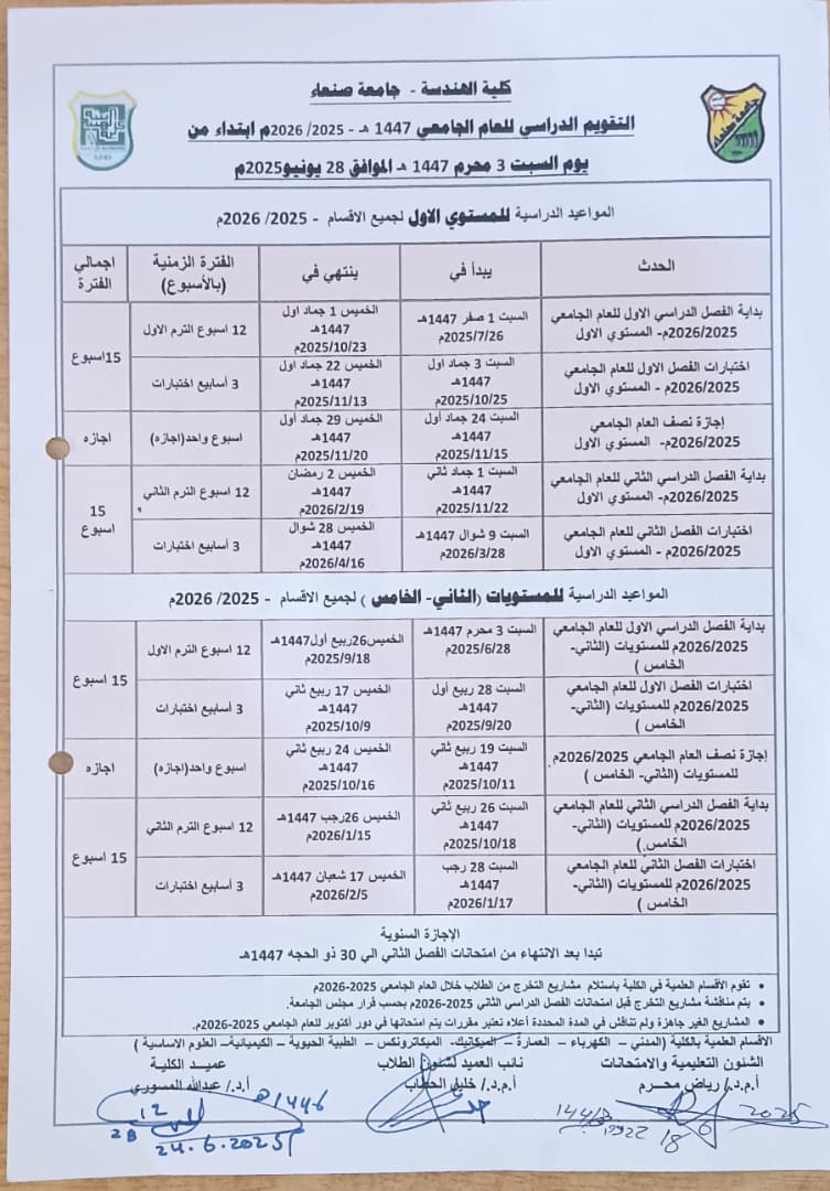 التقويم الدراسي للعام الجامعي 1447هـ / 2025 -2026م للبكالوريوس التقويم الدراسي للعام الجامعي 1447هـ / 2025-2026م - للدراسات العليا