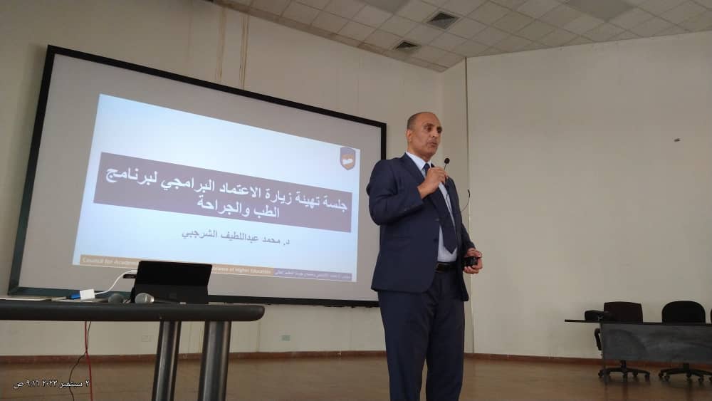 تواصلا لاعمال التوعية بالاعتماد الاكاديمي لبرنامج الطب والجراحة قام الاستاذ الدكتور خالد الخميسي عميد الكلية بلقاء ابنائه طلاب المستوى الرابع ..بحضور الاستاذ الدكتور احمد الحداد رئيس قسم طب المجتمع … موضحا ماهية الاعتماد الاكاديمي واهمية اعتماد برنامج الطب والجراحة الذي …