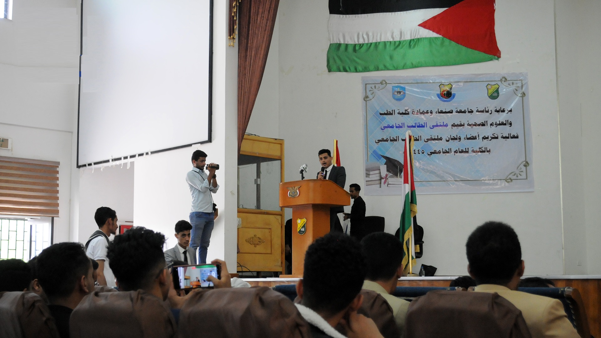 The Faculty of Medicine and Health Sciences at Sana’a University honored today the members and committees of the University Student Forum. In the honoring ceremony, the Dean of the Faculty of Medicine, Prof. Dr. Khaled Al-Khamesy, praised the efforts of the members and scientific committees of the forum at the Faculty of Medicine during the past year, especially in holding activities and initiatives that enhance the spirit of cooperation and benevolence among students and solving the problems they face .