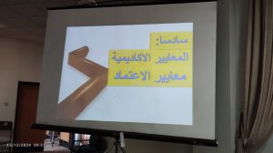 National expert Professor Saleh Bahaj provided a detailed explanation of the concepts of academic standards and international accreditation criteria, the significance of the course file, and the job satisfaction scale for faculty members and their assistants within the educational environment. He also discussed teaching and learning skills, modern strategies for effective teaching, and the foundations of scientific research.