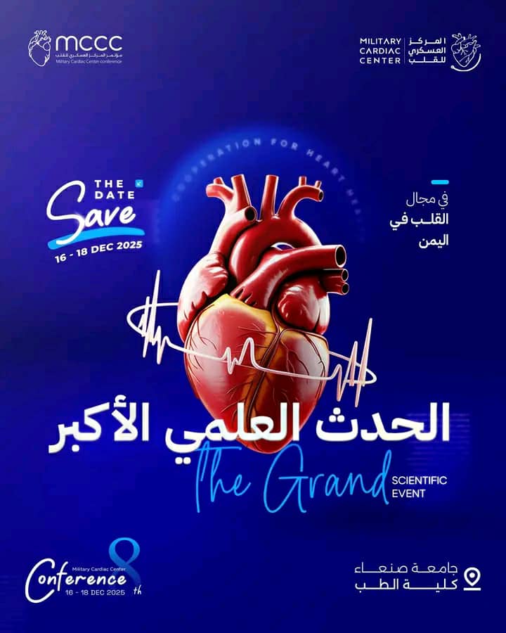 The Military Cardiac Center, in collaboration with the Faculty of Medicine and Health Sciences at Sana’a University, is preparing to launch the 8th Scientific Conference on Cardiology and its accompanying workshops. The event takes place from December 16 to 18, …