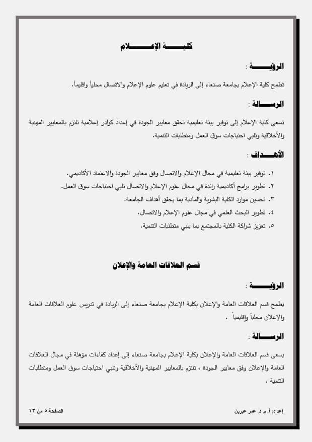 العلاقات العامة والإعلان - كلية الإعلام - جامعة صنعاء