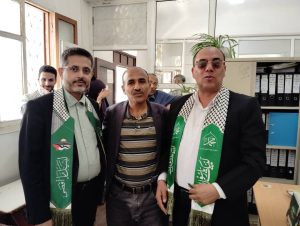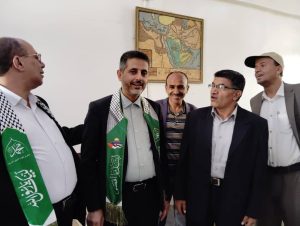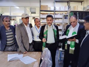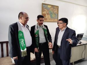 بزيارة رسمية إلى كلية الإعلام بجامعة صنعاء، برفقة عميد الكلية د. عمر أحمد داعر.