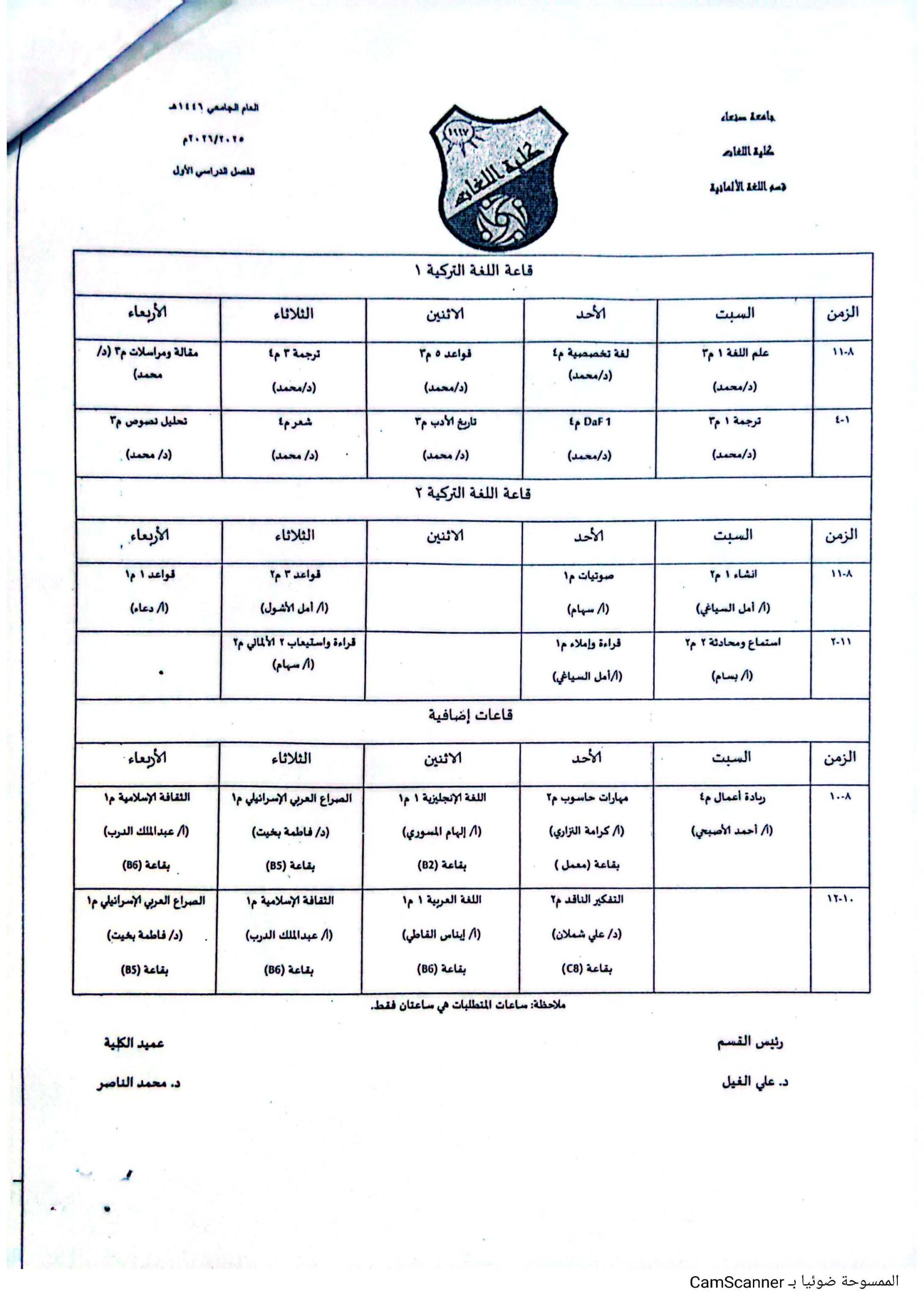 جدول قسم اللغة الالمانية