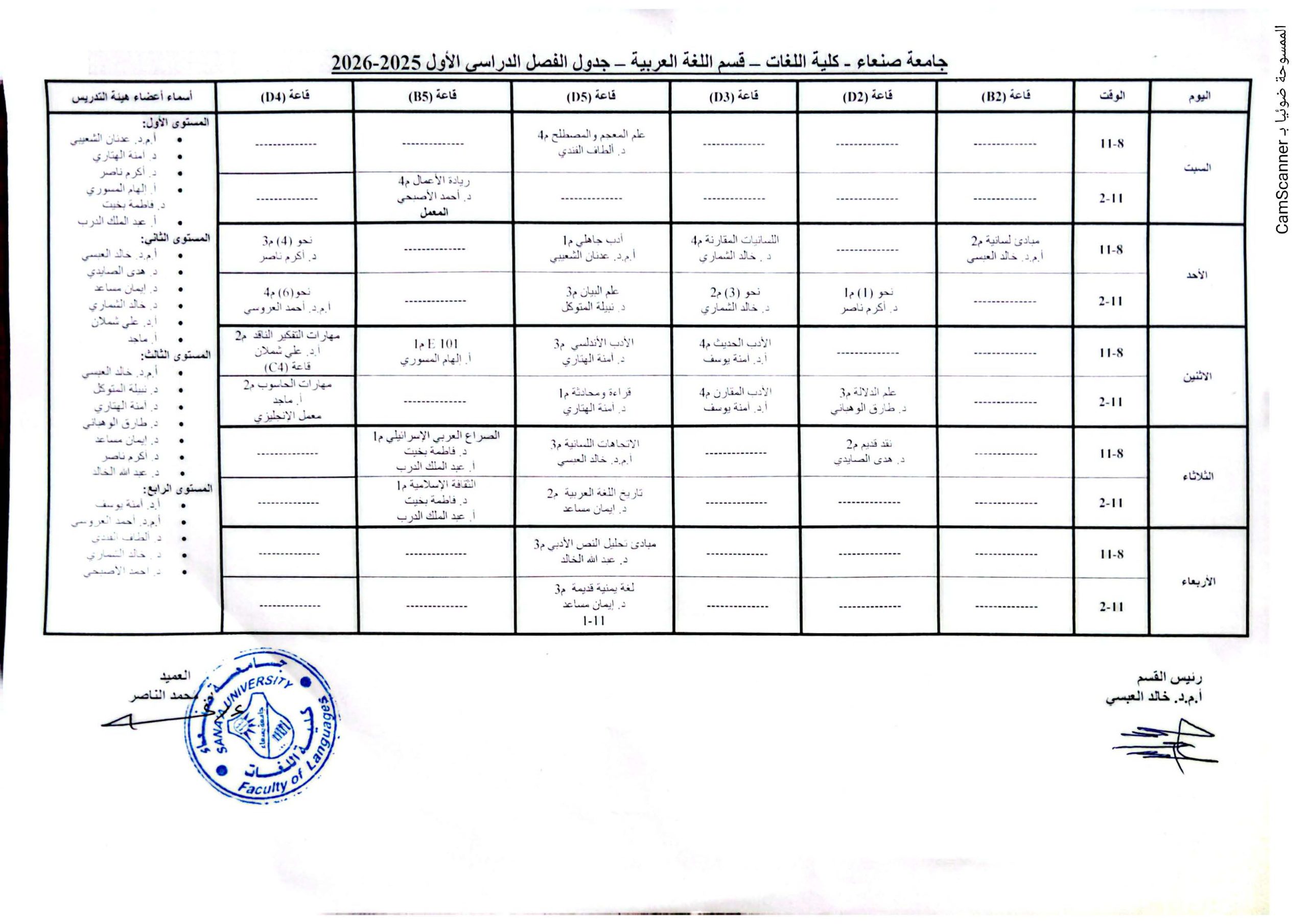 جدول قسم اللغة العربية