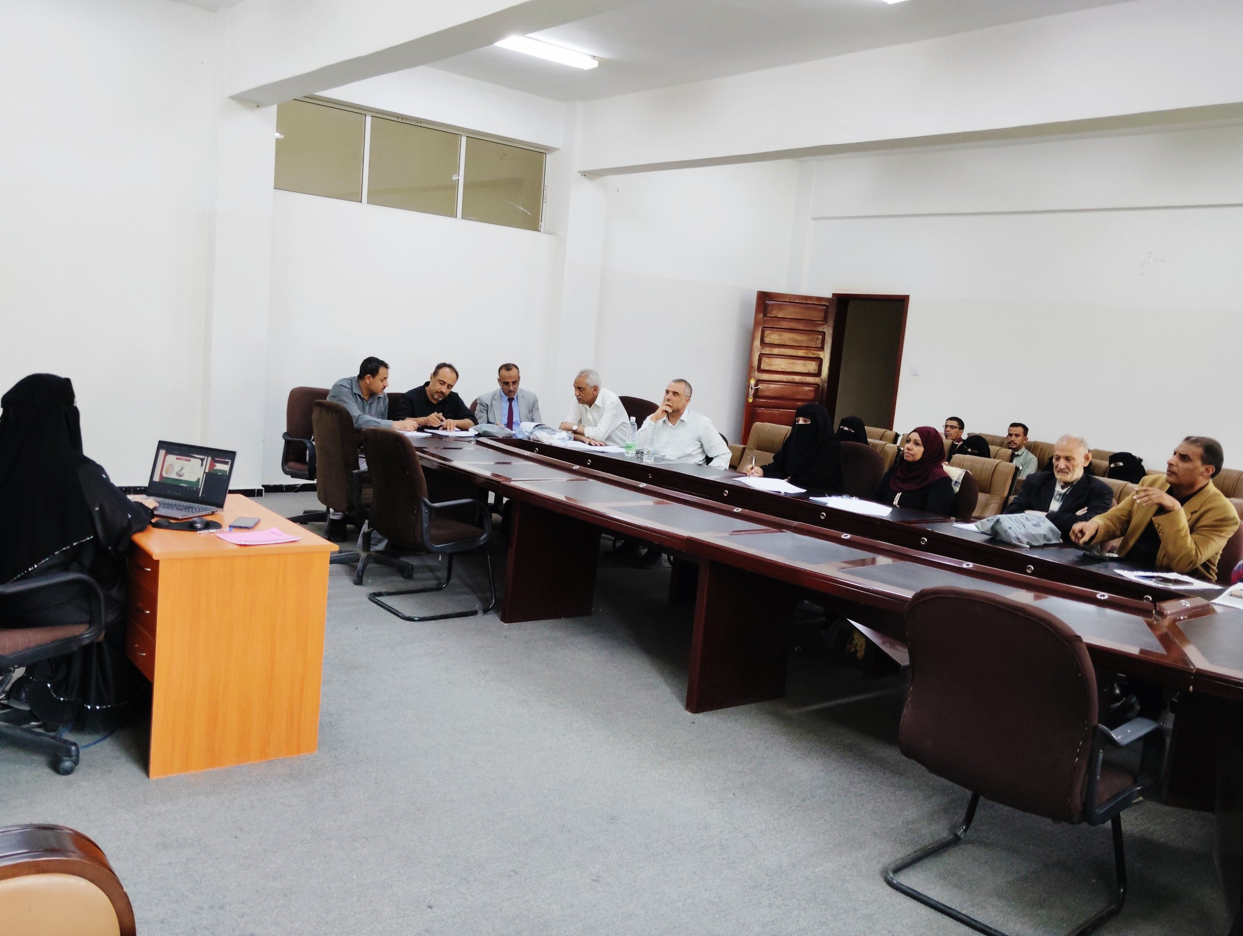 حضر الجلسة الدكتور عباس مطهر نائب العميد للشؤون الأكاديمية والدراسات العليا، والدكتور عبدالودود النزيلي، رئيس القسم وعدد من أعضاء هيئة التدريس في قسم اللغة الإنجليزية وقسم الترجمة إلى جانب مجموعة من طلاب الدراسات العليا بالكلية، حيث ساد الجو العلمي تفاعل إيجابي وإثراء أكاديمي مثمر.