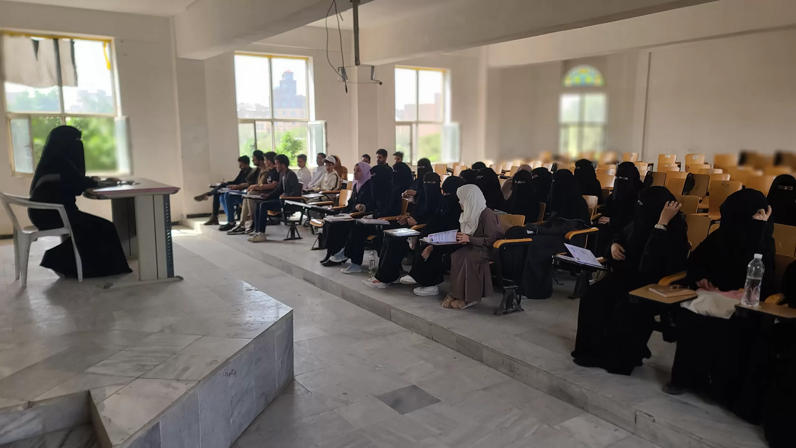 قام نائب عميد الكلية لشؤون الجودة بكلية اللغات بزيارة للقاعات الدراسية لتفقد سير العملية التعليمية وقد لاحظ الحيوية والنشاط من قبل أعضاء الهيئة التدريسية والطلبة والإنضباط بالمواعيد حسب الجداول الدراسية.
