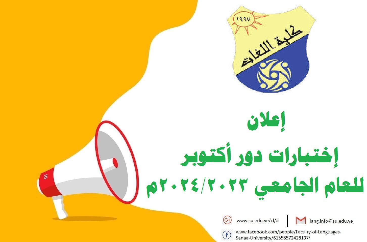 تعلن كلية اللغات – جامعة صنعاء بأنه تقرر موعد إختبارات دور أكتوبر للعام الجامعي 2023/2024 ابتداءً من يوم السبت الموافق 2024/08/17م وبحسب الجداول وأسماء الطلبة المحددة في الكشوفات المرفقة. فعلى جميع الطلبة المذكورين تسديد رسوم دخول اختبار دور أكتوبر، مع …