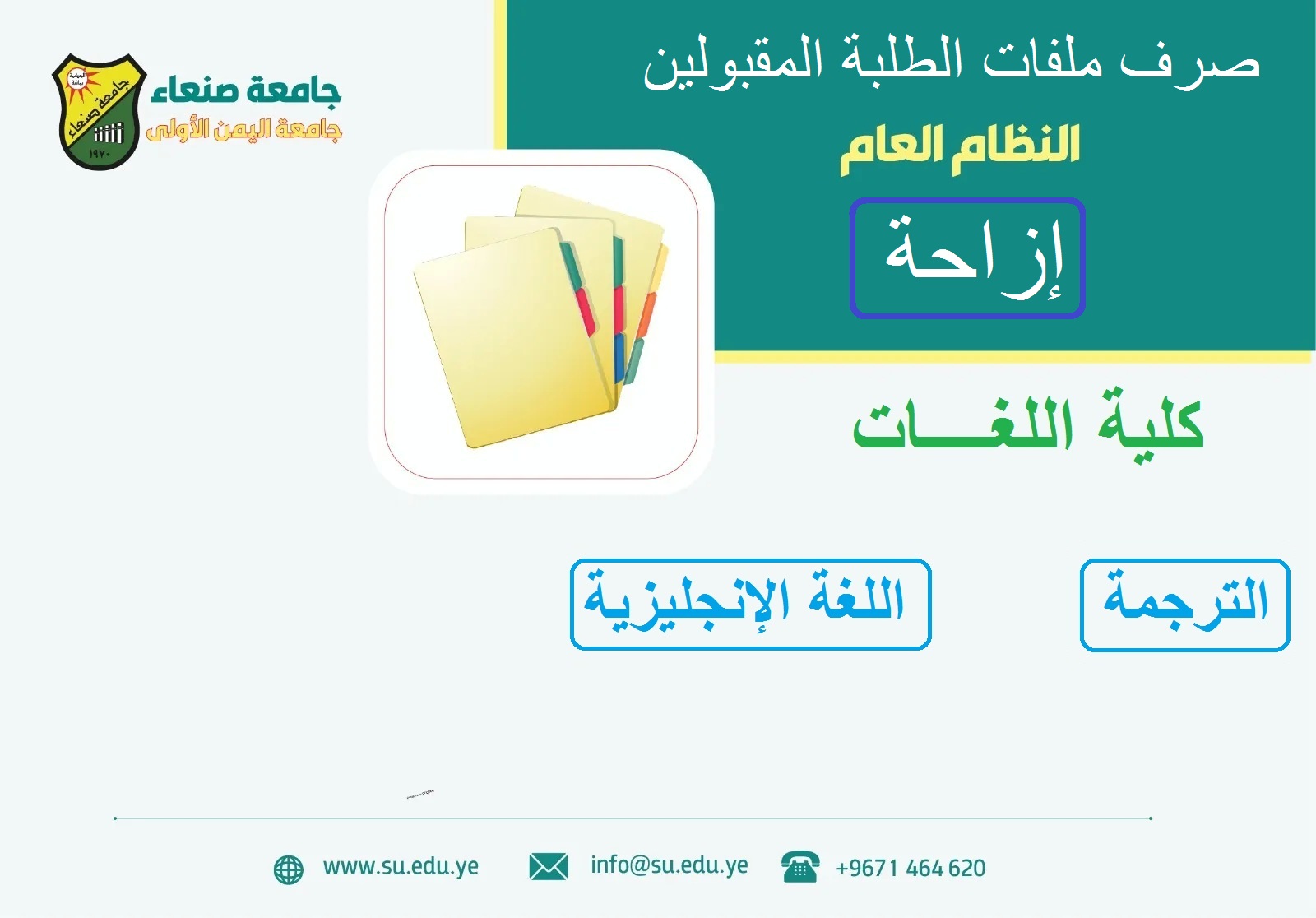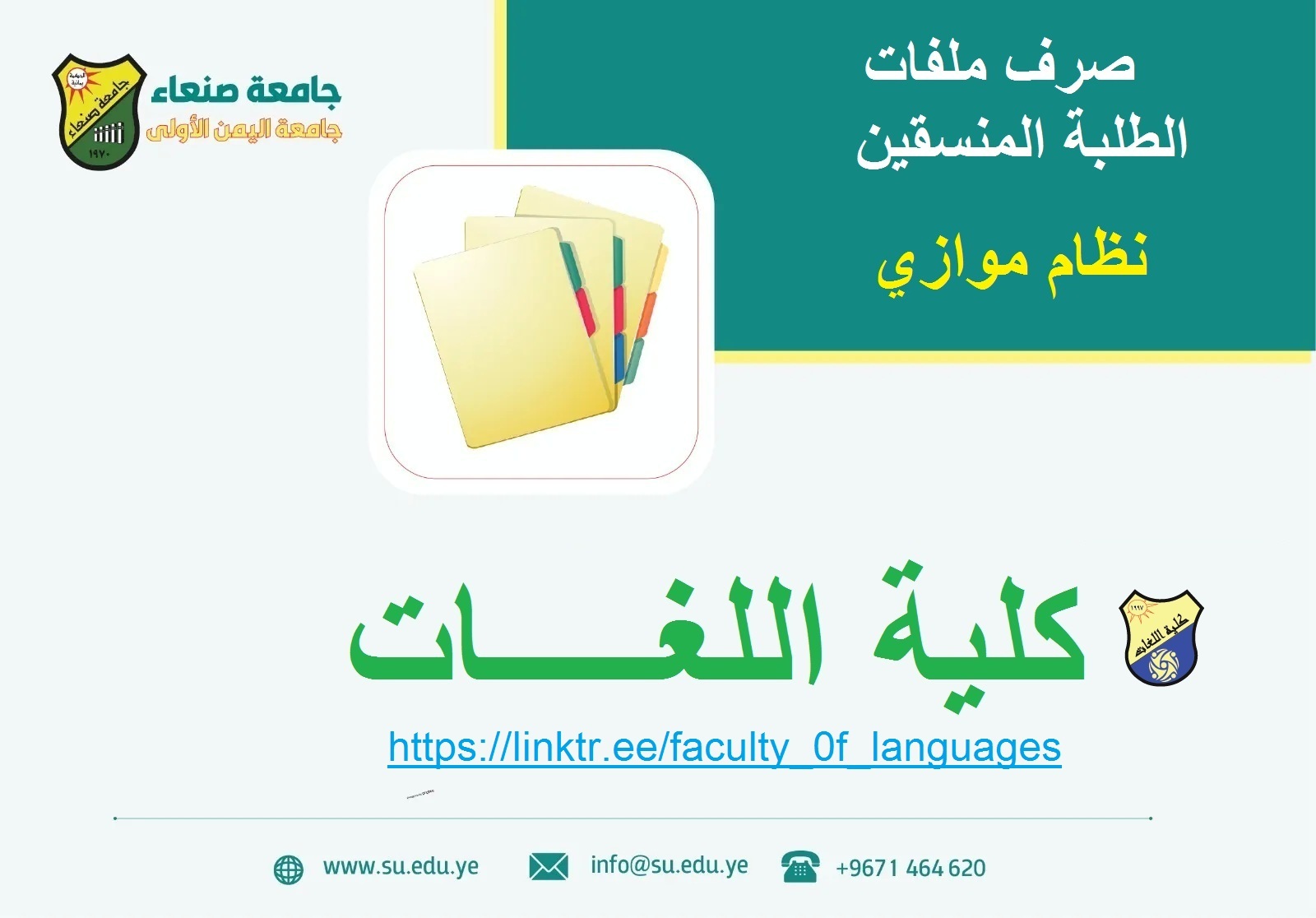 تعلن كلية اللغات بجامعة صنعاء للطلاب المنسقين في الكلية (النظام العام والنظام الموازي) للعام الجامعي 1447هـ 2025/2026م، عن بدء عملية صرف الملفات بحسب الكشوفات المرفقة، ابتداءً من يوم الأحد 12 محرم 1447هـ الموافق 8 يوليو 2025م في مبنى الكلية بالجامعة …