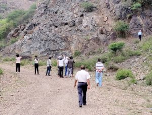 – *الوقفة الأولى:* منطقة المحويت – خميس بني سعد: وهناك جرى التعرف على العديد من التراكيب الجيولوجية والطبقات الرسوبية الرملية والجيرية.