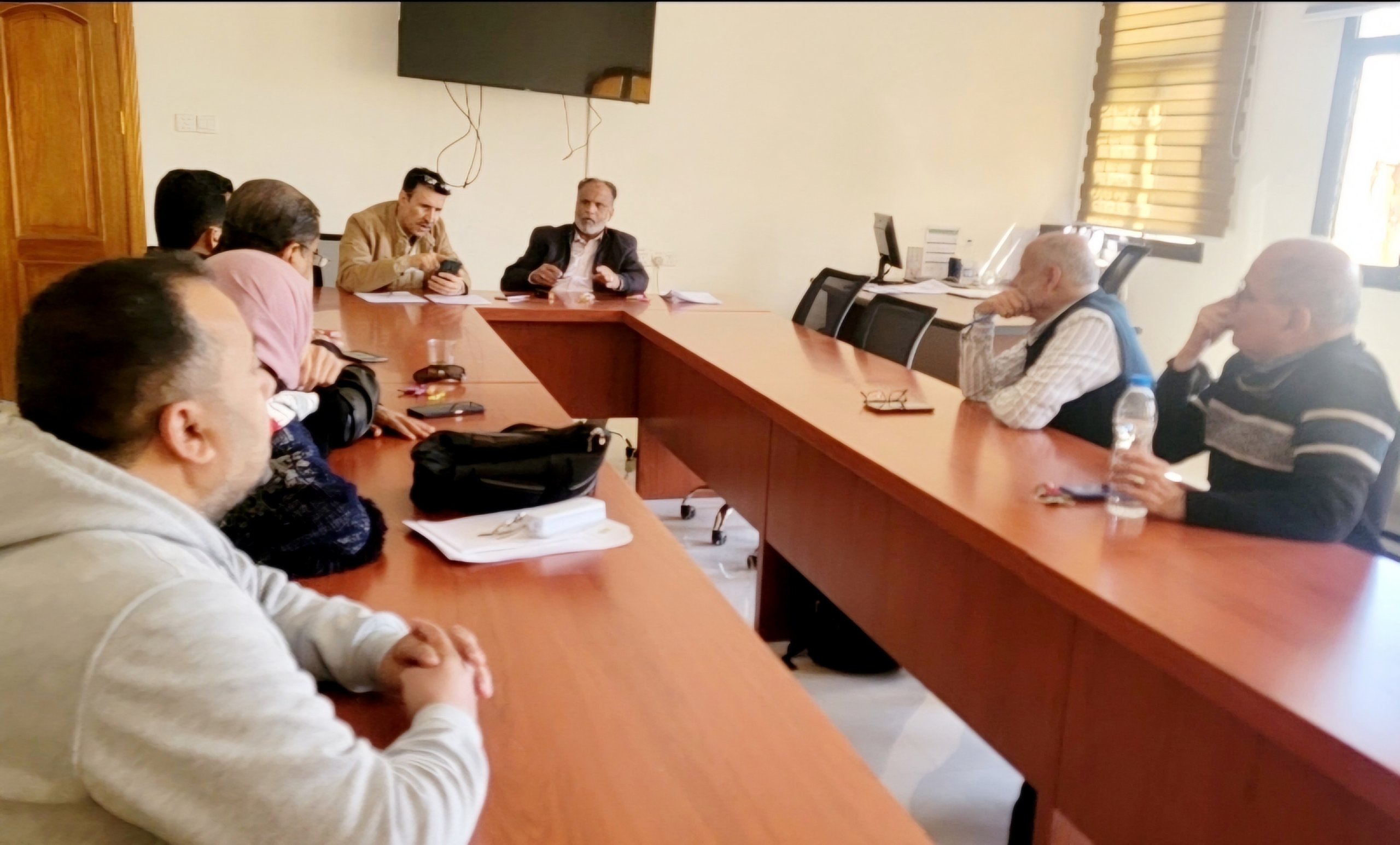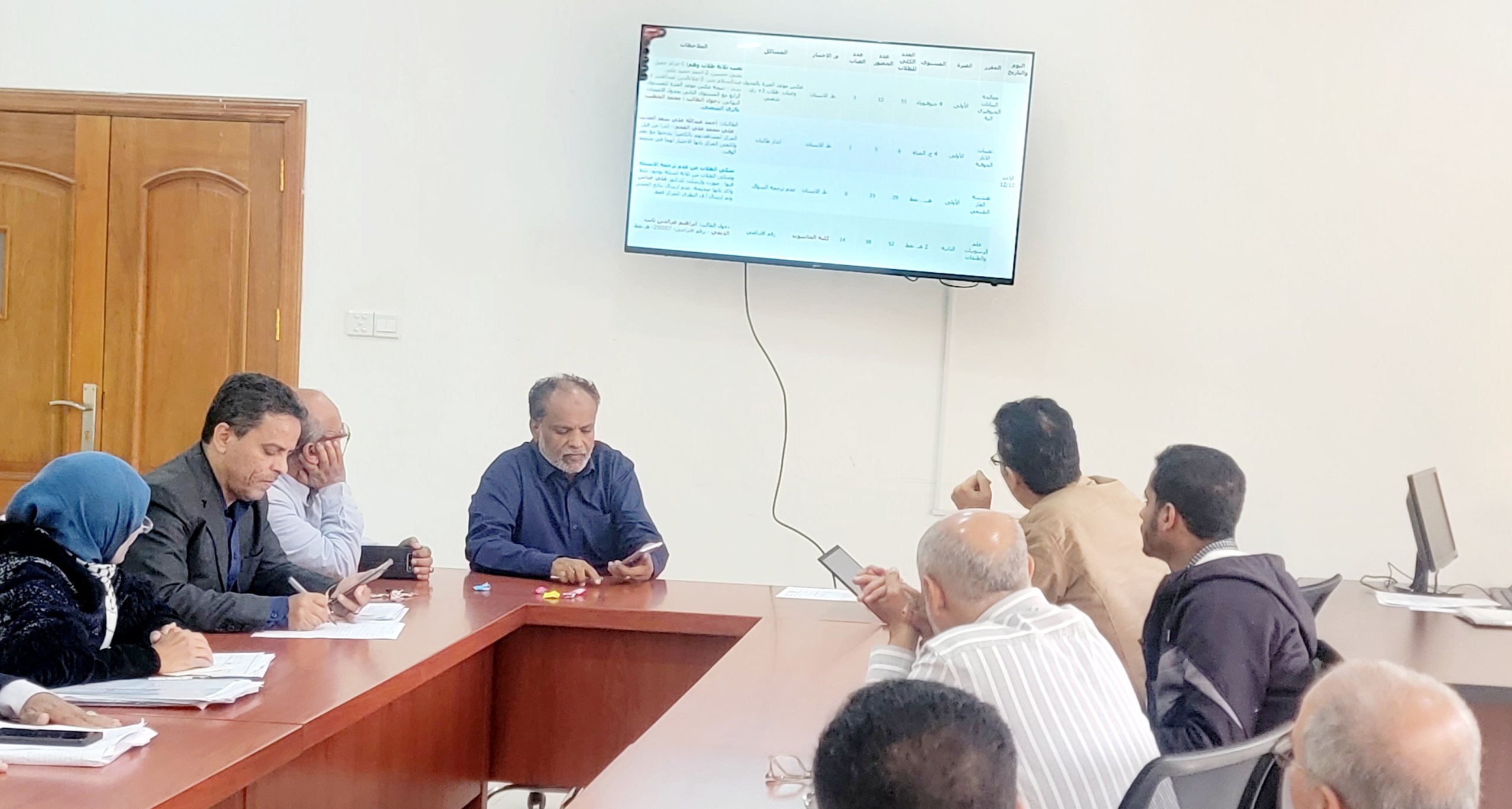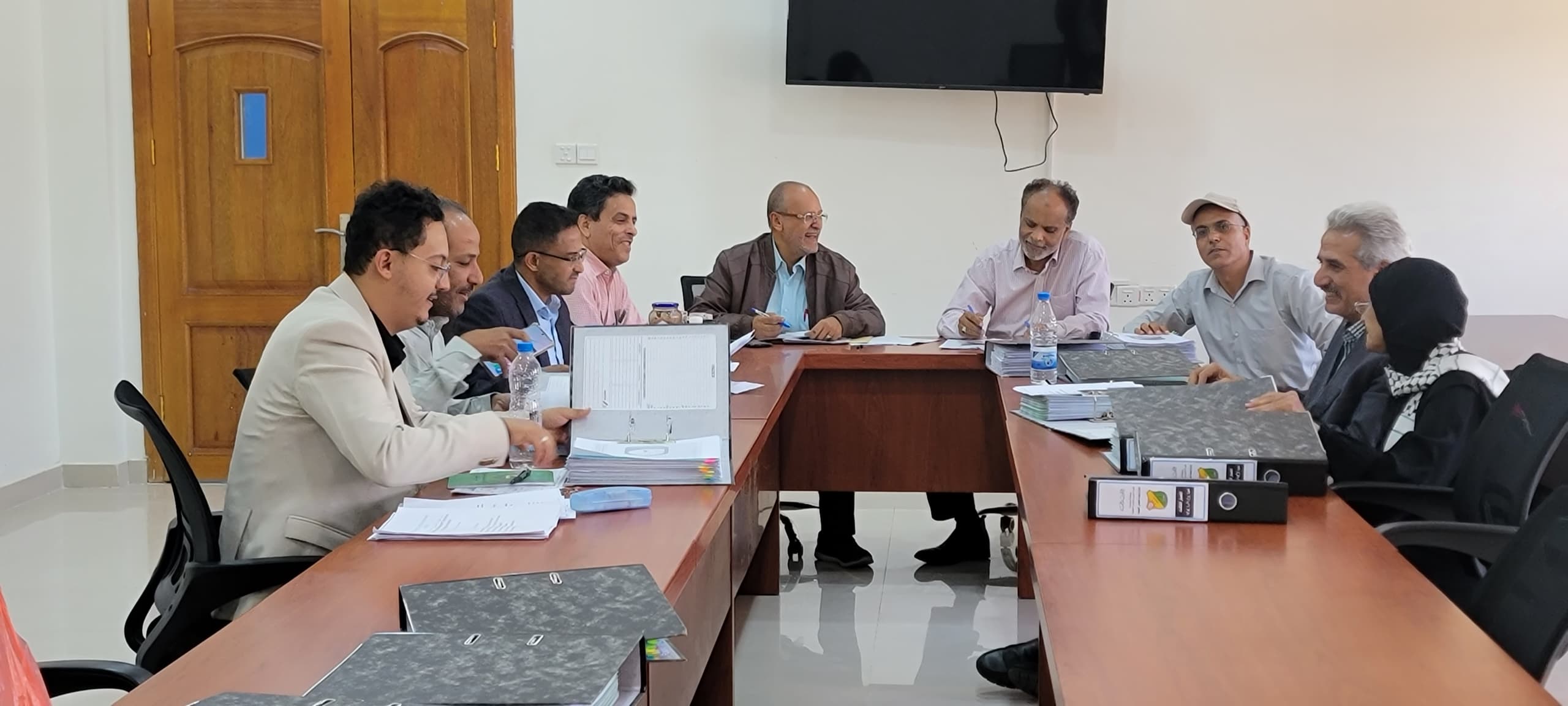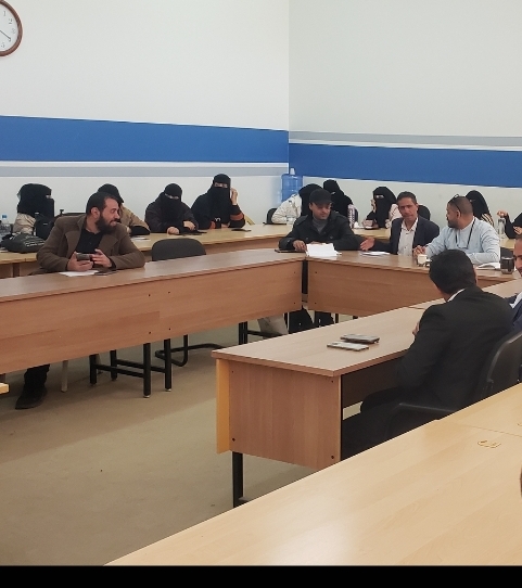 اجتماع عميد الكلية ونوابة ورؤسا الاقسام وامين الكلية والكادر الاكاديمي والاداري بالكلية لمناقشة مواضيع الطلاب والكلية والاستعداد لاستقبال فريق الاعتماد المؤسسي
