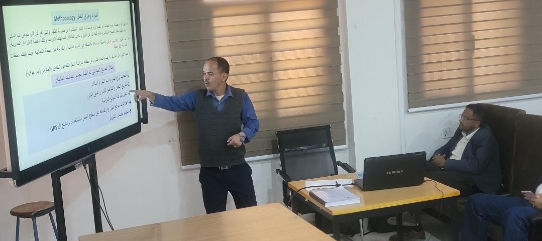 صنعاء : الإثنين 26 يناير 2026م الموافق 8 شعبان 1447هـ شهدت كلية البترول والموارد الطبيعية بجامعة صنعاء اليوم إقامة سمنار لعرض مقترح رسالة الماجستير المقدمة من الطالب الباحث: صالح أحمد محمد الهدوي، بعنوان: ”تقييم الخواص الكيميائية لخزانات حصاد المياه ودور …