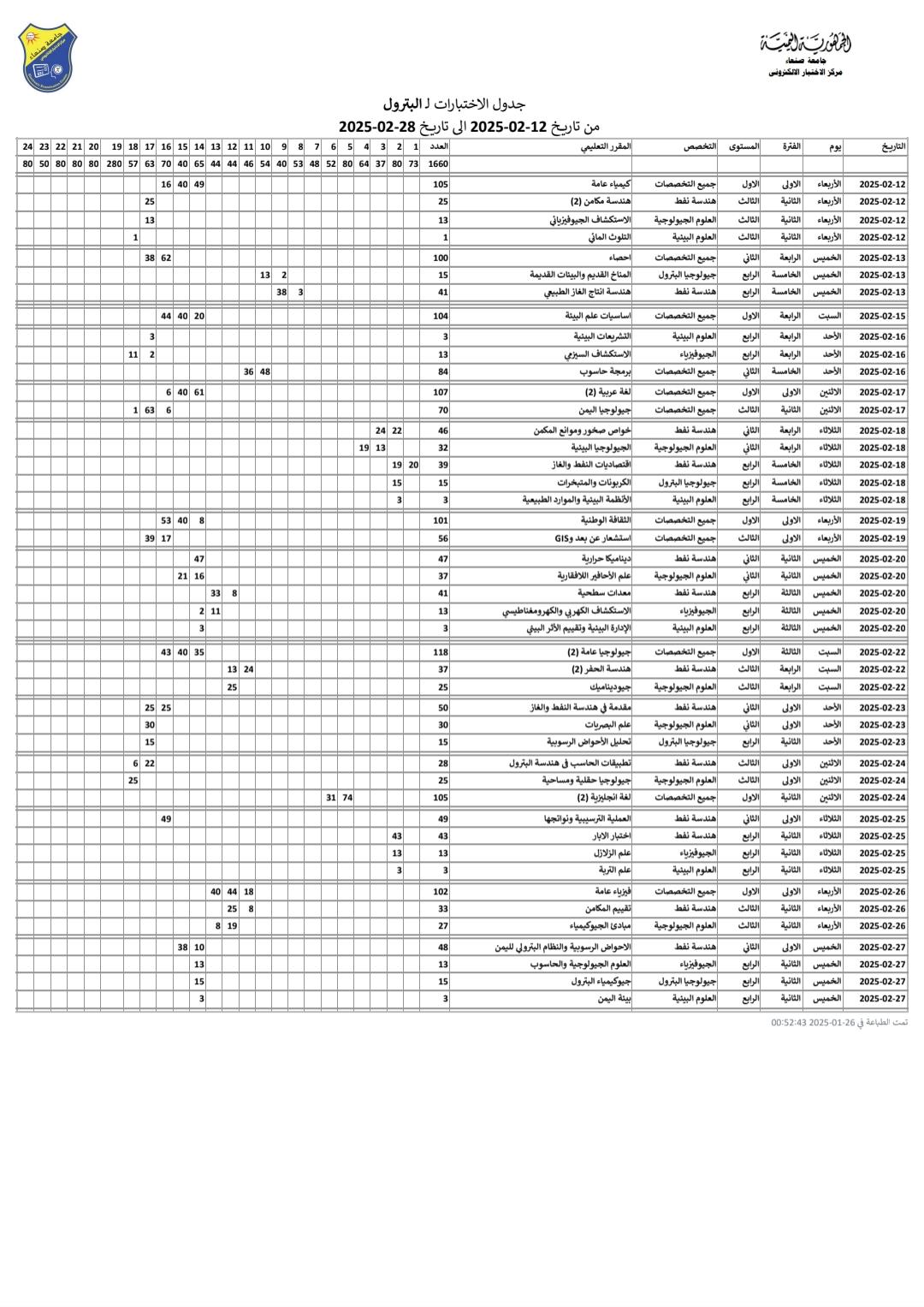 https://su.edu.ye/ce/wp-content/uploads/sites/26/2026/02/كشف-توزيع-الطلاب-جيولوجيا-اليمن-في-القاعات-2024-20_260206_054220.pdf https://su.edu.ye/ce/wp-content/uploads/sites/26/2026/02/كشف-توزيع-الطلاب-لغة-عربية-2-في-القاعات-2025-2026_260206_054233.pdf