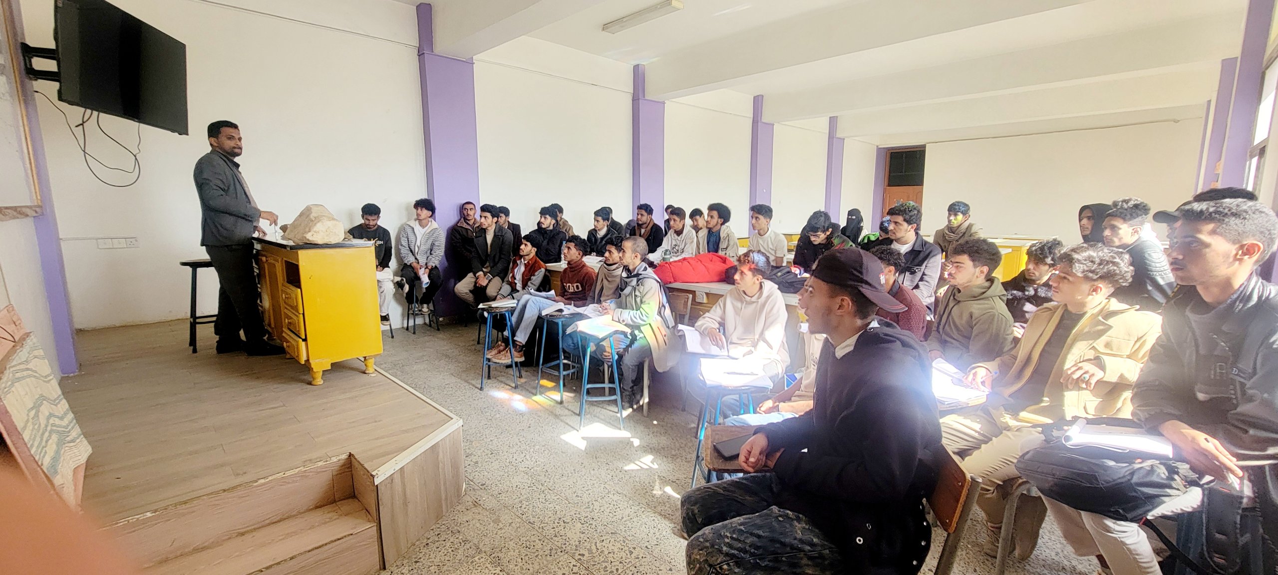 زياره علمية لطالبات معهد المعلمين في قسم العلوم لكلية البترول والموارد الطبيعية يوم الخميس الموافق 16/1/2025 الهدف من الزيارة التعرف على انواع الصخور والاحافير وطرق حفظ الاحافير وقام الاستاذ محمد عبدالرزاق مكابر بالتوضيح للطالبات عن أنواع الصخور والاحافير في اليمن …
