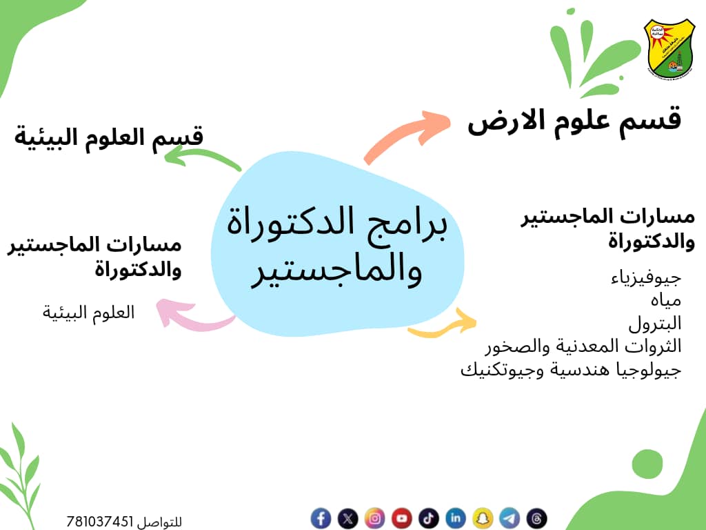تُعلن كلية البترول والموارد الطبيعية – جامعة صنعاء عن استمرار برامجها النوعية في الدراسات العليا (الماجستير والدكتوراه)، والتي تهدف إلى إعداد كوادر بحثية ومهنية متخصصة، قادرة على تلبية احتياجات سوق العمل الوطني والإقليمي في مجالات الطاقة والبيئة والموارد الطبيعية. وتتوزع …