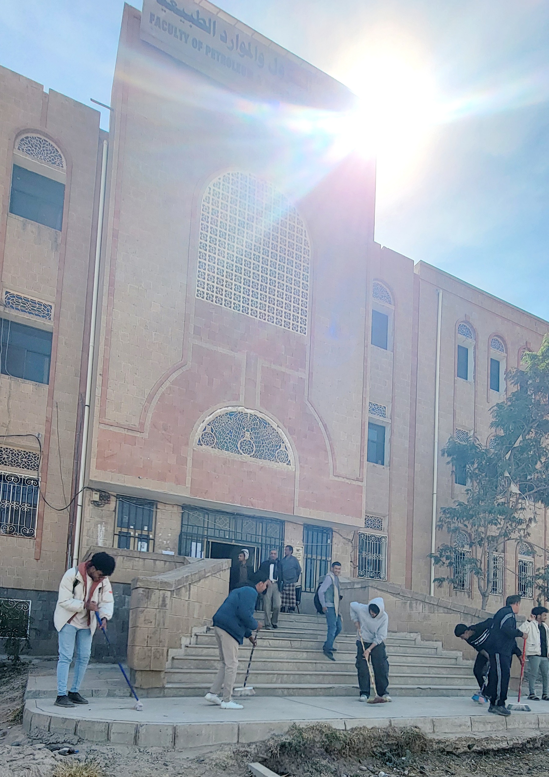 صنعاء – 2025/12/30م دشن طلاب كلية البترول والموارد الطبيعية بجامعة صنعاء، اليوم، حملة نظافة شاملة استهدفت مبنى الكلية والقاعات الدراسية، والمعامل، والساحة الخارجية للكلية، وذلك برعاية عمادة الكلية وبالتعاون مع ملتقى الطالب الجامعي. تأتي هذه المبادرة تحت شعار “بيئتنا التعليمية …