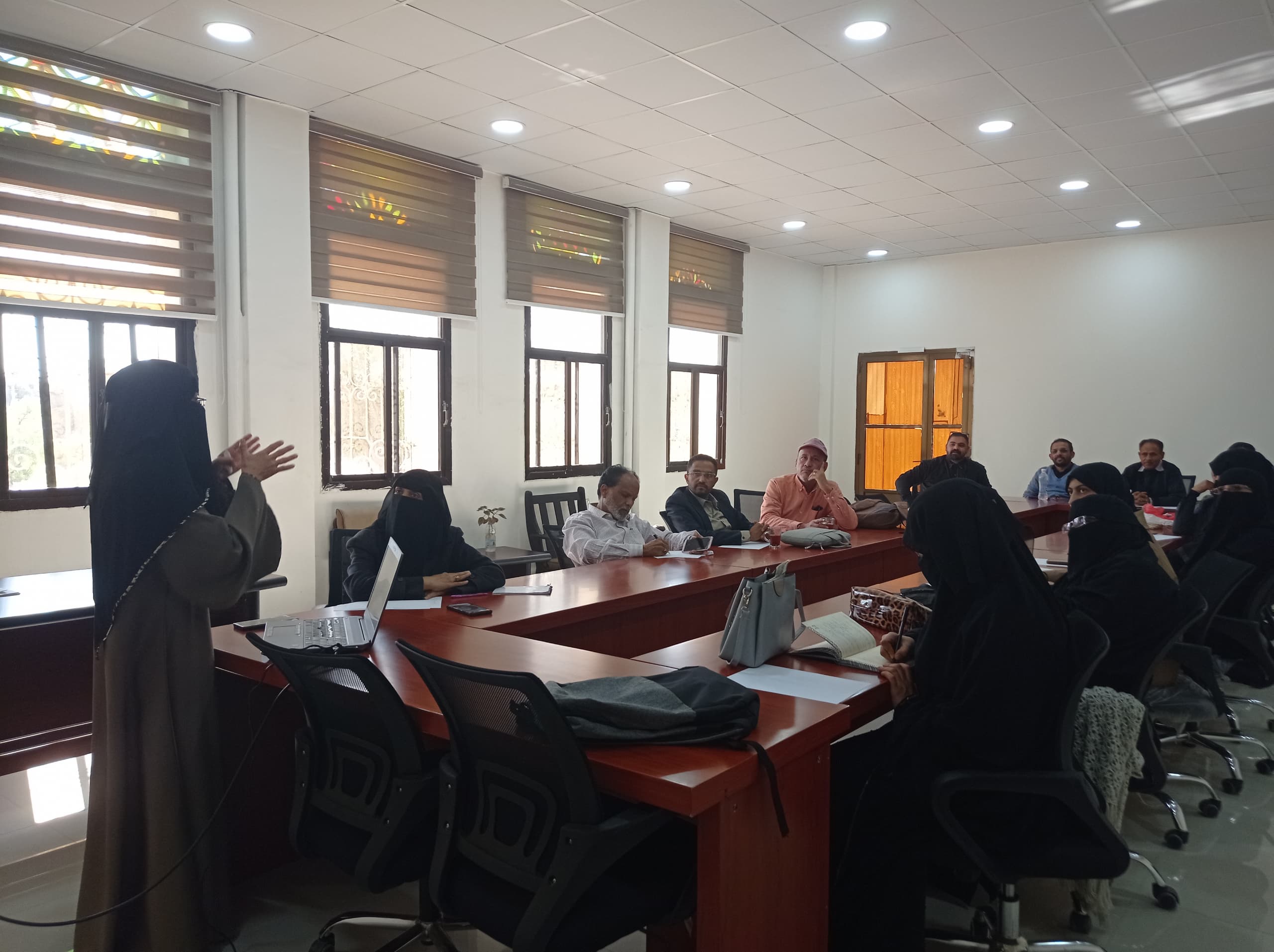 لقاء أعضاء هيئة التدريس لاستكمال مراجعة الشواهد والادلة للمعايير التسعة للتقويم المؤسسي والاعتماد التي حددها فريق التحقق من مجلس الاعتماد من خلال المراجعة للوثائق والادلة.