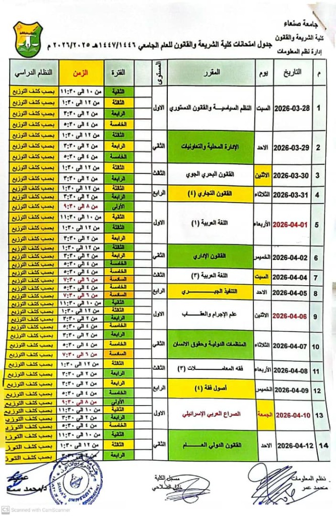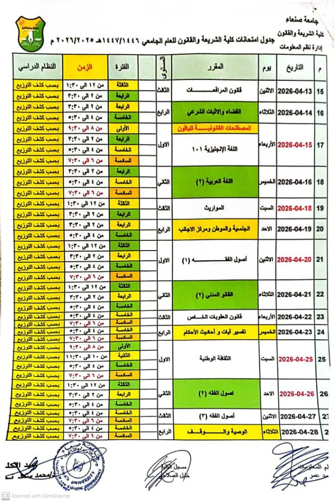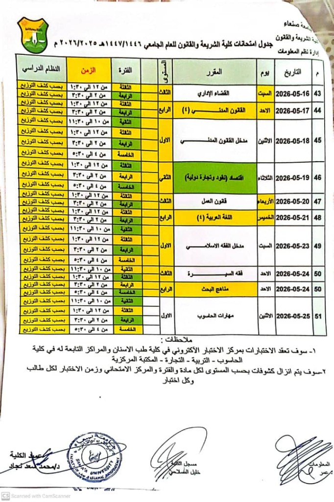 جدول الاختبارات النهاية للعام الجامعي 2026/2025مكلية الشريعة والقانون كشوفات توزيع طلاب وطالبات مستوى اول للاختبارات بمركز الاختبار الاكتروني كشوفات توزيع طلاب وطالبات مستوى ثاني للاختبارات بمركز الاختبار الاكتروني كشوفات توزيع طلاب وطالبات مستوى ثالث للاختبارات بمركز الاختبار الاكتروني كشوفات توزيع طلاب وطالبات مستوى رابع للاختبارات بمركز الاختبار الاكتروني نماذج الاختبارات النهاية العام الجامعي 2024/2023مكلية الشريعة والقانون المستوى الاول المستوى الثاني المستوى الثالث المستوى الرابع نماذج الاختبارات النهاية العام الجامعي 2025/2024مكلية الشريعة والقانون أُنقر هنا