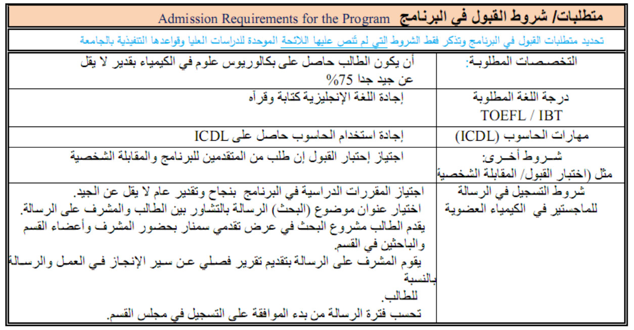 إعداد وتأهيل باحثين في الكيمياء العضوية متميزين للمساهمة في التخطيط والتطوير وممارسة الاختصاص بمستوى مهني عالي من خلال البحوث التطبيقية والدراسات المتقدمة في مجال التنمية وتحقيق الرؤية الوطنية ومواكبة التطورات العلمية