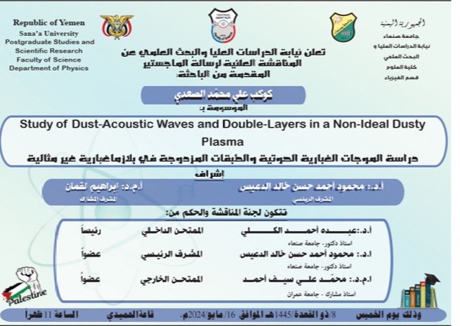 إعلان سمنار مناقشة رسالة الماجستير للباحث: باسم الاكحلي