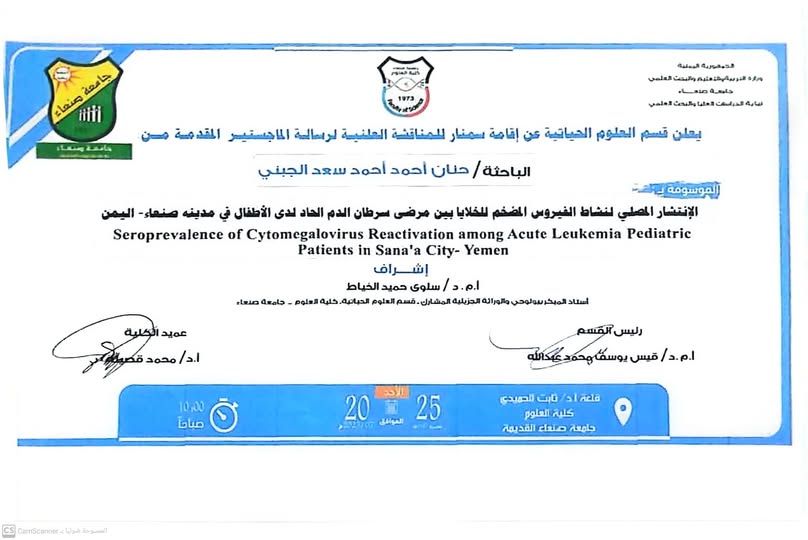 إعلان المناقشة العلنية لرسالة الماجستير للطالبة: حنان الجبني Posted by كلية العلوم جامعة صنعاء التصنيفات الأخبار Date يوليو 19, 2025 Share: كلية العلوم جامعة صنعاء المقال السابق إعــــــلان عن فتح باب التنسيق والقبول بنظام التجسير يوليو 19, 2025 المقال التالي إعلان هام لطلاب المستوى الثاني، الثالث والرابع يوليو 20, 2025 You may also like إعلان سمنار مناقشة رسالة الماجستير للباحث: باسم الاكحلي 30 مارس, 2026 إعلان عن دورة تدريبية لمدة اسبوع في مختبرات الميدلاب 28 مارس, 2026 إعلان هام للطلاب الباقون للإعادة 25 مارس, 2026