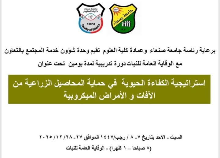 إعلان عن إقامة دورات تدريبة في الوقاية العامة للنبات