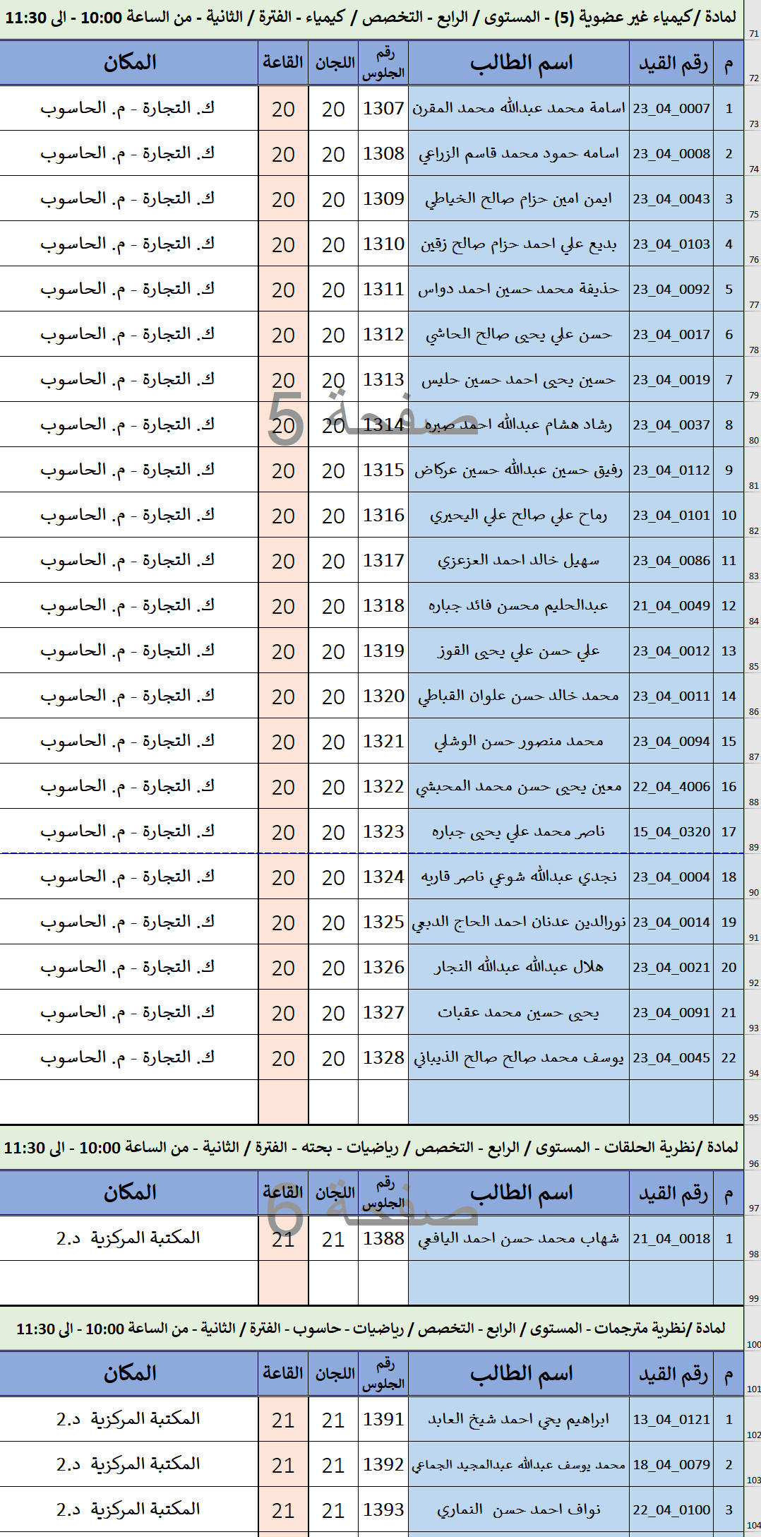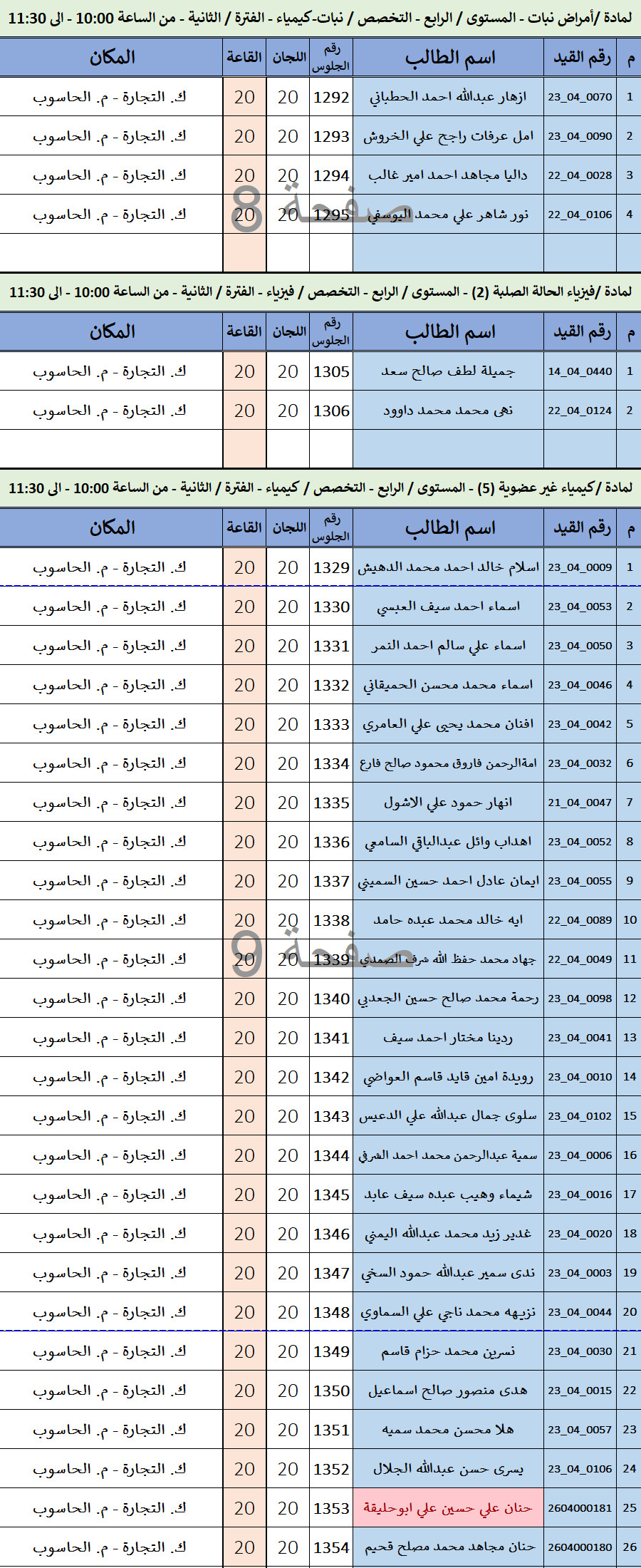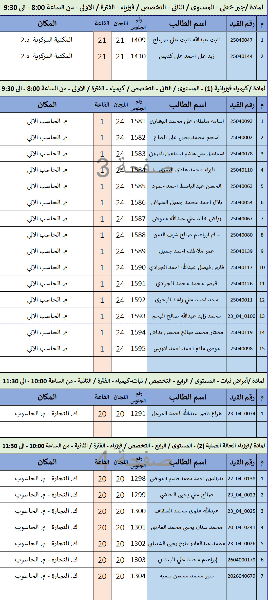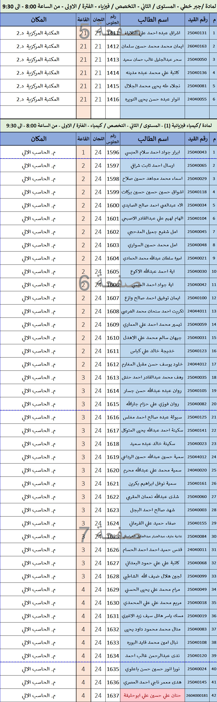 كشف توزيع الطلاب لاختبارات الفصل الدراسي الاول 2025-2026 ليوم / الأربعاء الموافق / 01-أكتوبر-2025