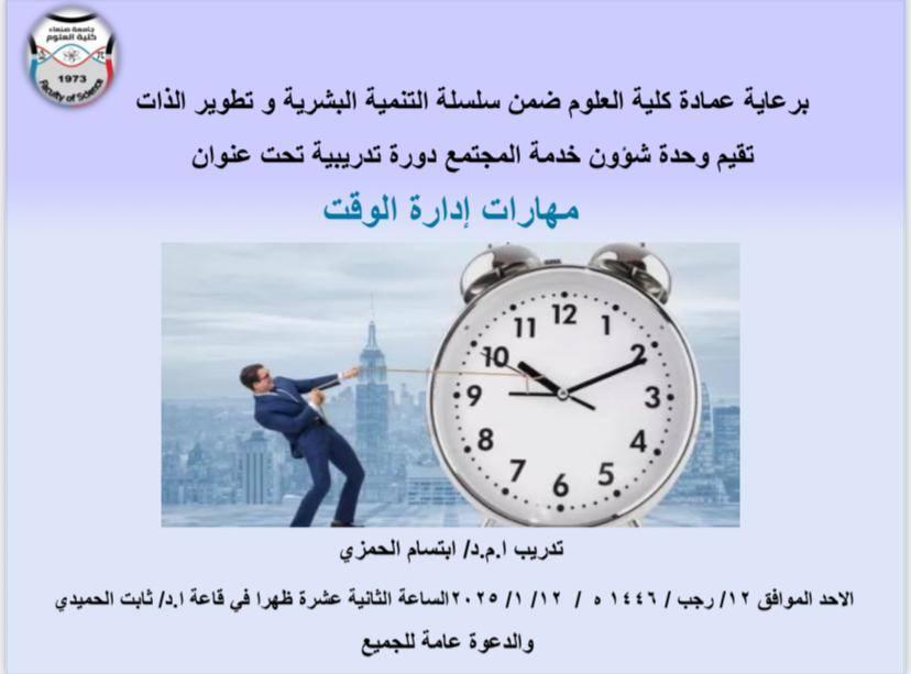 Announcement of a training course on time management skills