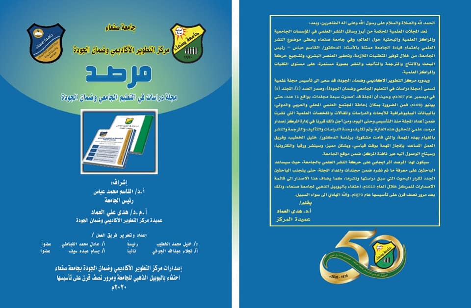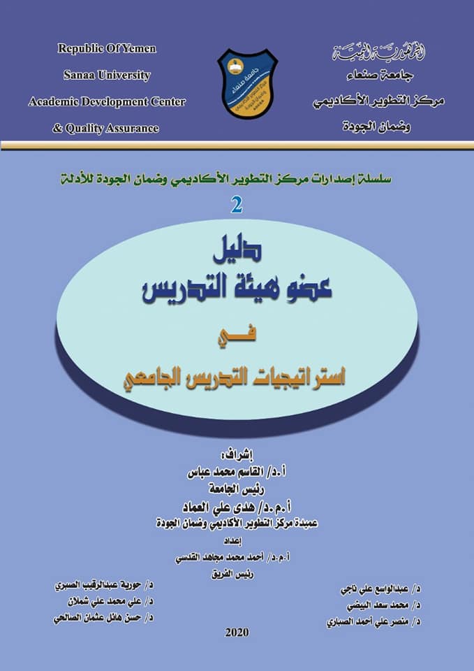 مركز التطوير الاكاديمي وضمان الجوده .. يساهم برفع ثقافه الجوده بأصدار أكثر من ثلاثين اصدار منها دليل الانتاج العلمي لجامعة صنعاء _تحليل الوضع الراهن – الدليل الاجرائي لوحدات الجوده لكليات ومراكز الجامعه – دليل مخرجات التعليم للبرامج والمقررات الدراسيه – دليل عضو هيئه التدريس في بناء الاختبارات التحصيليه -دليل عضو هيئه التدريس في اخلاقيات مهنه التعليم الجامعي -دليل اعداد الخطط الاستراتيجيه في كليات ومراكز الجامعه -دليل مركز التطوير الاكاديمي وضمان الجوده -التنميه المهنيه في التعليم الجامعي -مقياس تقييم الاجراءات الخاصه بتطوير نظم التقويم والامتحانات – مقياس تقييم اسئله الاختبار -مقياس معايير جوده البحث العلمي -مقياس اخلاقيات مهنه التعليم الجامعي -مقياس تقييم رؤساء الاقسام الاكاديميه بكليات الجامعة – مقياس رضا طلبه الجامعة عن جوده العمليه التعليميه – مقياس تقييم اعضاء هيئه التدريس ومساعديهم بالجامعه من قبل الطلبه – مقياس رضا قيادات الكليات بالجامعه عن جوده مهارات التدريس لدى اساتذة الجامعة – مقياس الاحتياجات التدريبيه لاعضاء هيئه التدريس بالجامعه – مقياس رضا اعضاء هيئه التدريس عن اداء مركز التطوير الاكاديمي وضمان الجوده بالجامعه – التقرير السنوي لمركز التطوير الاكاديمي وضمان الجوده – التقرير السنوي لجامعه صنعاء للعام الجامعي ٢٠١٨_٢٠١٩م