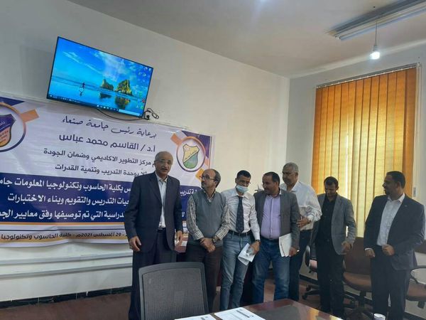 برعاية الأستاذ الدكتور القاسم عباس رئيس الجامعة اقام مركز التطوير وضمان الجودة بالجامعة في صباح يوم السبت الساعة(8,30) الموافق 28/8/2021م ورشة تدريبية لأعضاء هيئة التدريس بجامعة صنعاء، وقد تناولت هذه الورشة استراتيجيات التدريس النشط لأعضاء هيئة التدريس في كلية الحاسوب، حضر عدد من أعضاء هيئة التدريس بالكلية وكان عدد المتدربين خمسة عشر متدرب (15 ).