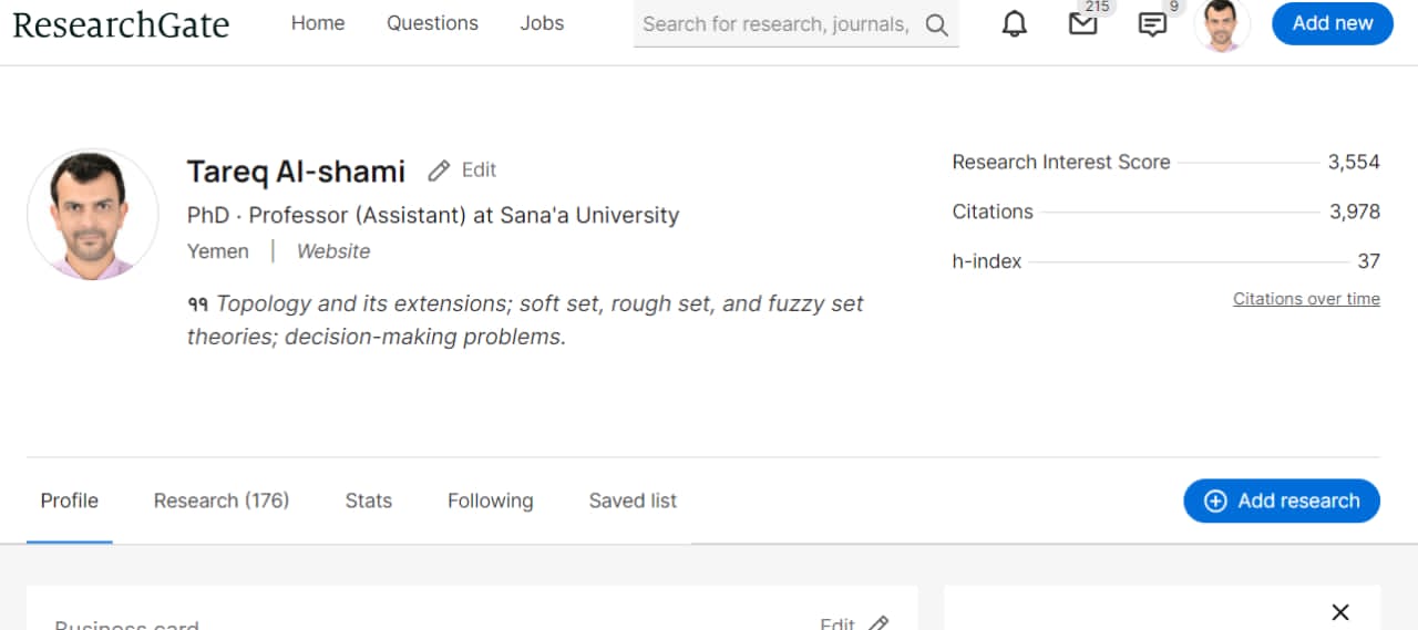 (see, https://www.researchgate.net/profile/Tareq-Al-Shami)
