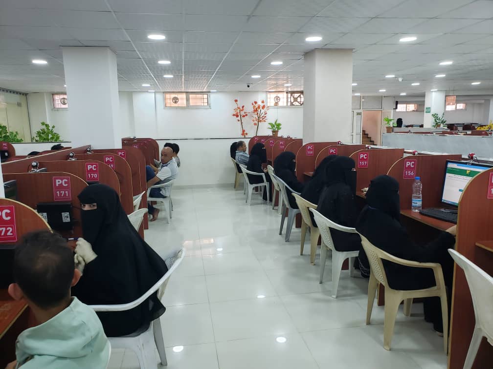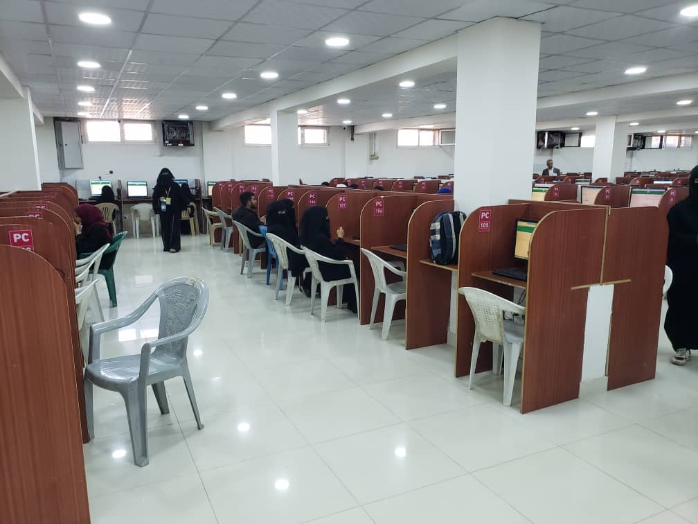 The ETC accommodated 5,920 students on the first day of exams, with the presence of deans and deputy deans who commended the smooth examination process and the efficiency of the ETC, as the first e-testing center in Yemen. ETC has a daily capacity of over 9,000 students, where students can view their results immediately after answering the last question and clicking the ‘submit’ button.