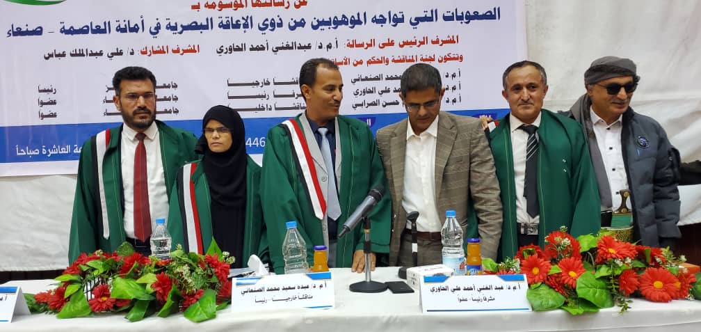 The study identified significant challenges faced by visually impaired gifted students in the Capital Secretariat-Sana’a, with administrative challenges ranking first, followed by educational, social, and finally personal difficulties. The study found no statistically significant differences in the level of challenges based on age, gender, or type of giftedness. The defense was attended by academics, researchers, students, and the student’s family and friends.