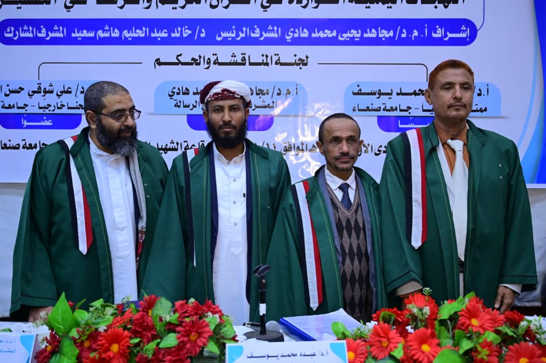The Public Viva-Voice Examination for the MA Thesis hereto entitled: ” Yemeni Dialects Mentioned in Holy Qura’an and Their Effect on Interpretation”, submitted by Mr. Ali Abdullah Mohammed Alhaid Department of Holy Quran and Its Sciences, Faculty of Education –Sana’a, Sana’a University, was held on Monday, 10/05/1446 Hijri corresponding to 11/11/2024. The Viva-Voce Committee, which was formed based on a resolution issued by the Post-Graduate Studies and Scientific Research Council, consisted of the following: