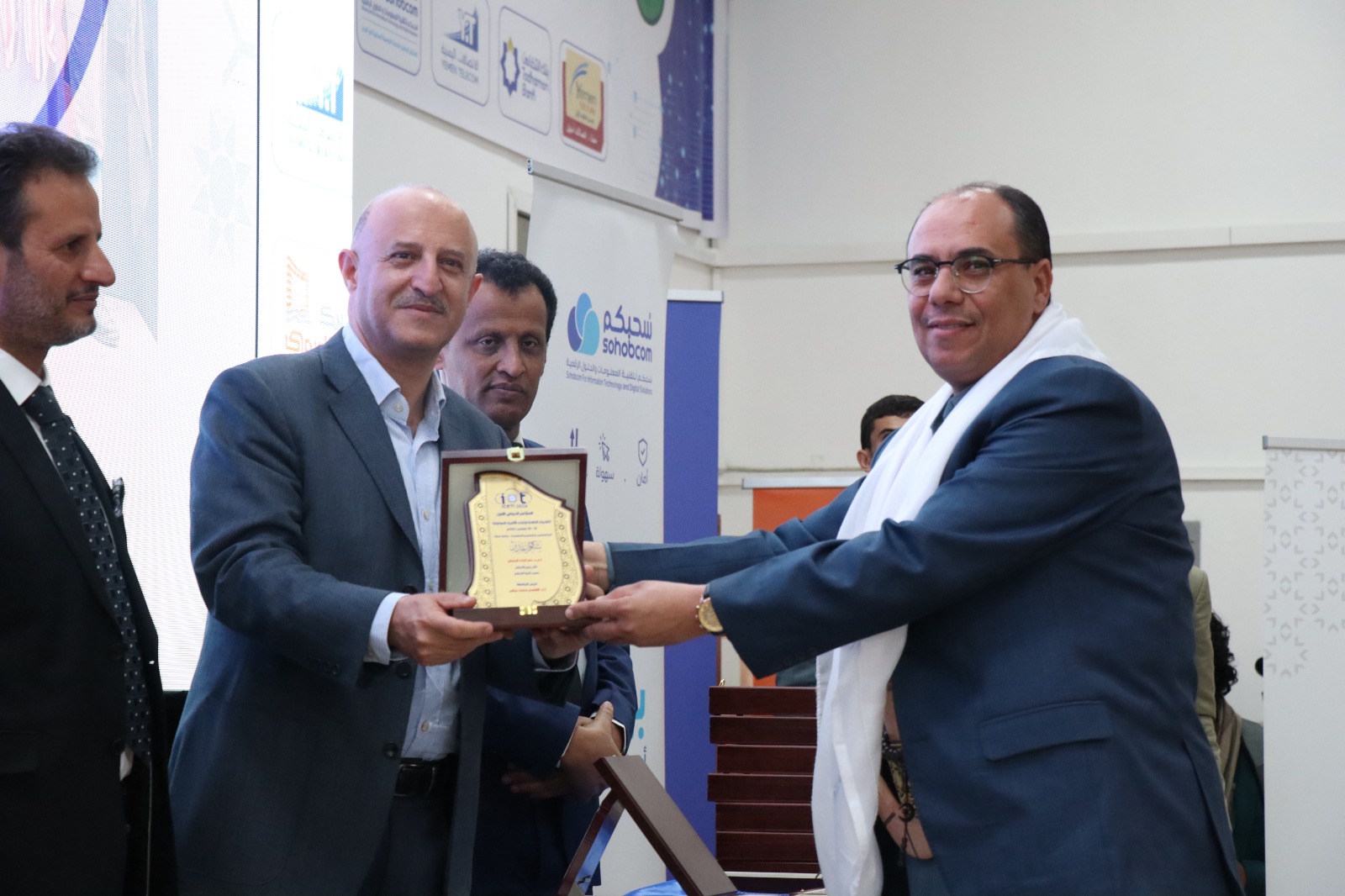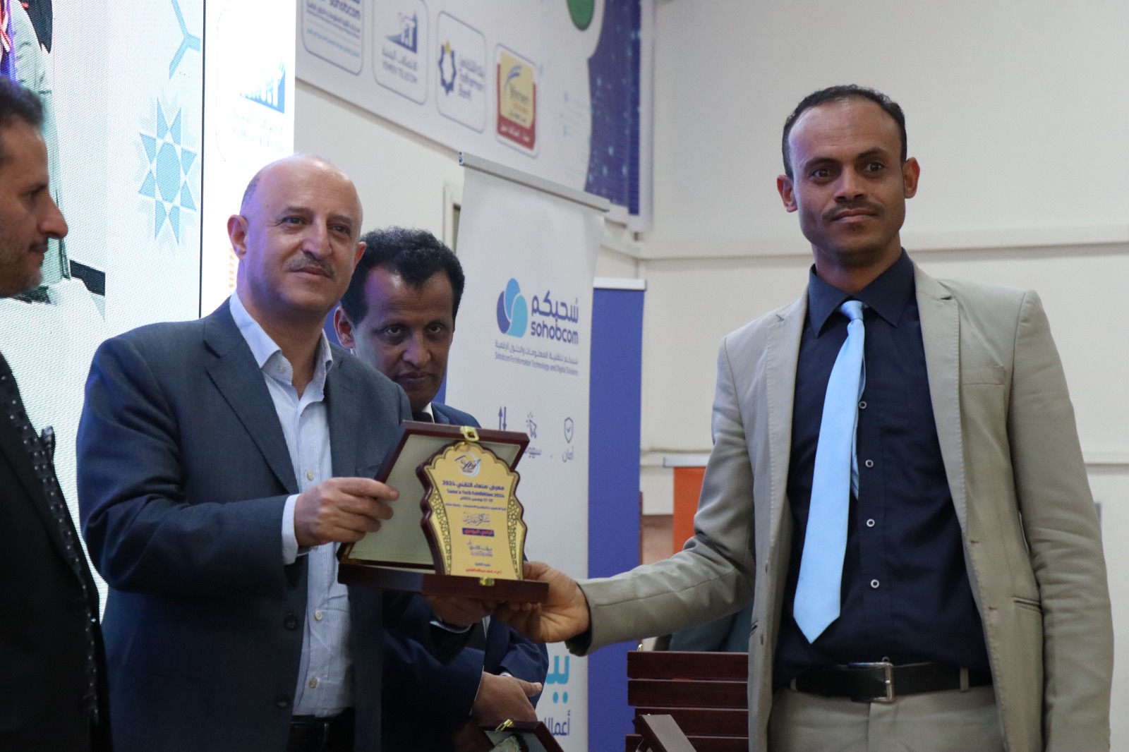 The event concluded with honoring sponsors and collaborators, including Dr. Omar Ahmed Daer, Deputy Minister of Information and Dean of the Faculty of Media; Yemen TV, represented by Mr. Mohammed Abu Taleb, Chairperson of the Channel; Yemen Mobile, TeleYemen, Yemen Kuwait Bank, and Al-Qassimi Bank. The heads of committees, researchers, and winners of the speed programming competition, which included 400 students from Sana’a University and other Yemeni universities, were also recognized.