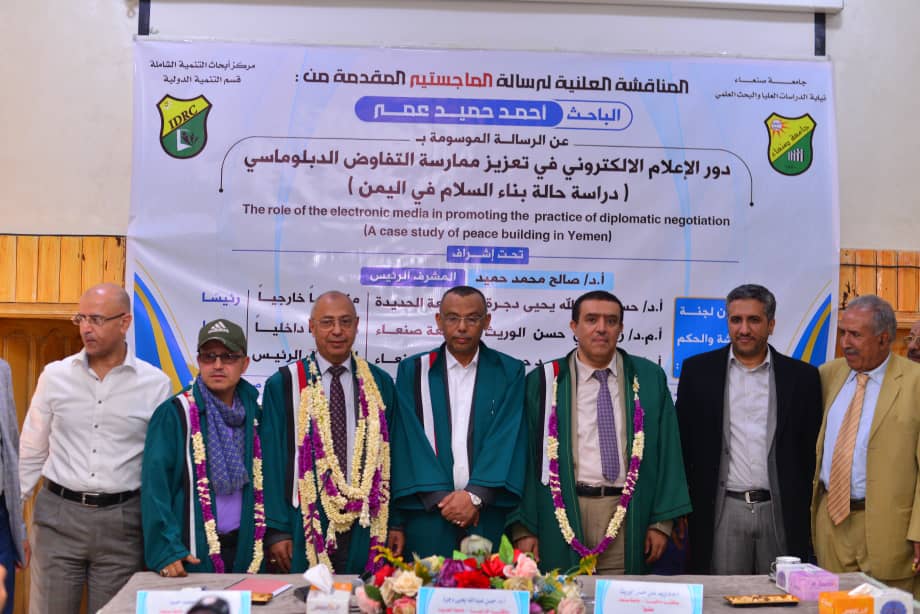 The Public Viva-Voice Examination for the MA Thesis hereto entitled: ” Syntactic The Principles According to Al-Khabisi in the Book Al-Muwashah Ali Kafiya Ibn Al-Hajib: A Descriptive syntactic Study study “, submitted by Mr. Baker Hasan Mohsen Alahnoomy Department of Arabic Language, Faculty of Education –Sana’a, Sana’a University, was held on Sunday, 23/05/1446 Hijri corresponding to 24/11/2024. The Viva-Voce Committee, which was formed based on a resolution issued by the Post-Graduate Studies and Scientific Research Council, consisted of the following: