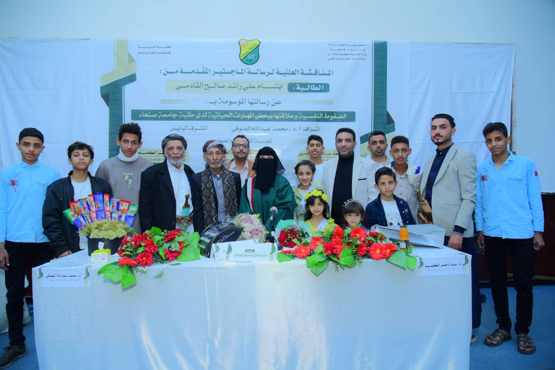 The Public Viva-Voice Examination for the MA Thesis hereto entitled: ” Psychological stress and its relationship to some life skills among students at Sana’a University “, submitted by Ms. Ebtesam Ali Rashed Saleh Alqademi Department of Educational Psychology, Faculty of Education –Sana’a, was held on Tuesday, 23/05/1446 Hijri corresponding to 24/12/2024. The Viva-Voce Committee, which was formed based on a resolution issued by the Post-Graduate Studies and Scientific Research Council, consisted of the following: